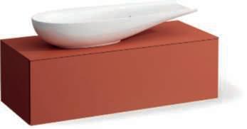 La collezione Ilbagnoalessi presentanuoveceramiche dalle forme fluide e morbide come il lavaboTuna.Abbinato alsottolavaboincolorterracotta,conferiscepersonalitàalla saladabagno moderna.