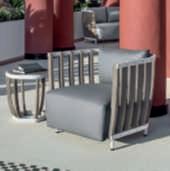 ArpaDivano, design Ramòn EsteveEstudio,combinala formageometricaconla morbidezza e il comfort della scocca imbottita.Realizzato artigianalmente in cordadi poliestere e acciaio inox.