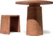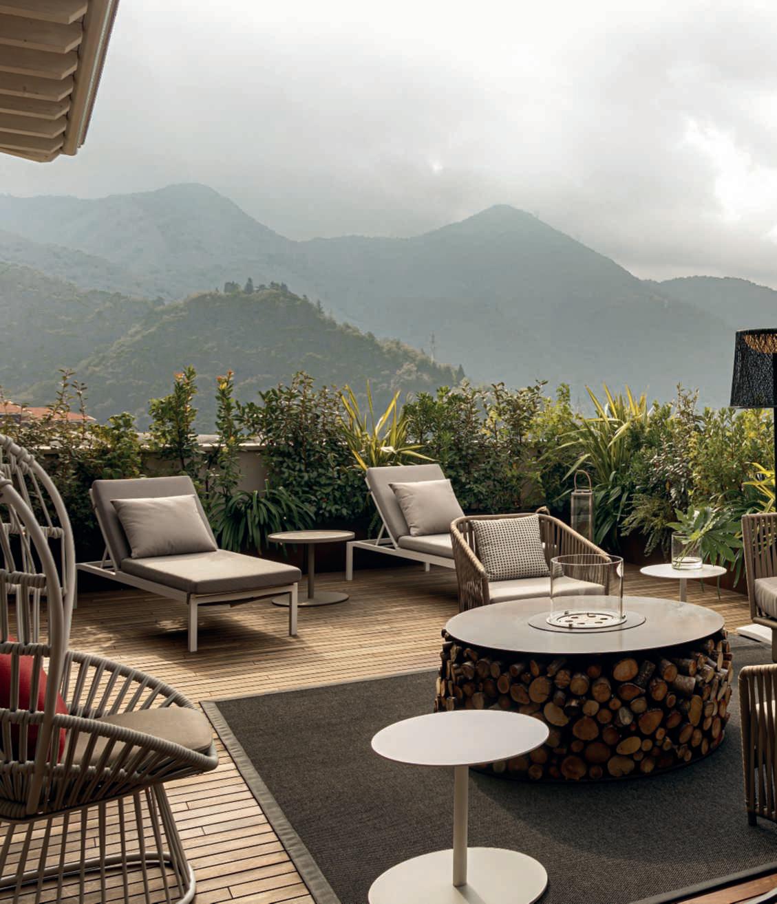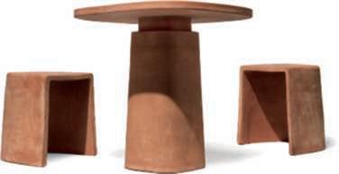 Iltavolo Gioi eglisgabelli Cave diMarioScairatodanno fortepersonalitàall’outdoor grazie alla lavorazione artigianale e di alto pregio e almateriale utilizzato,la terracottanaturale.