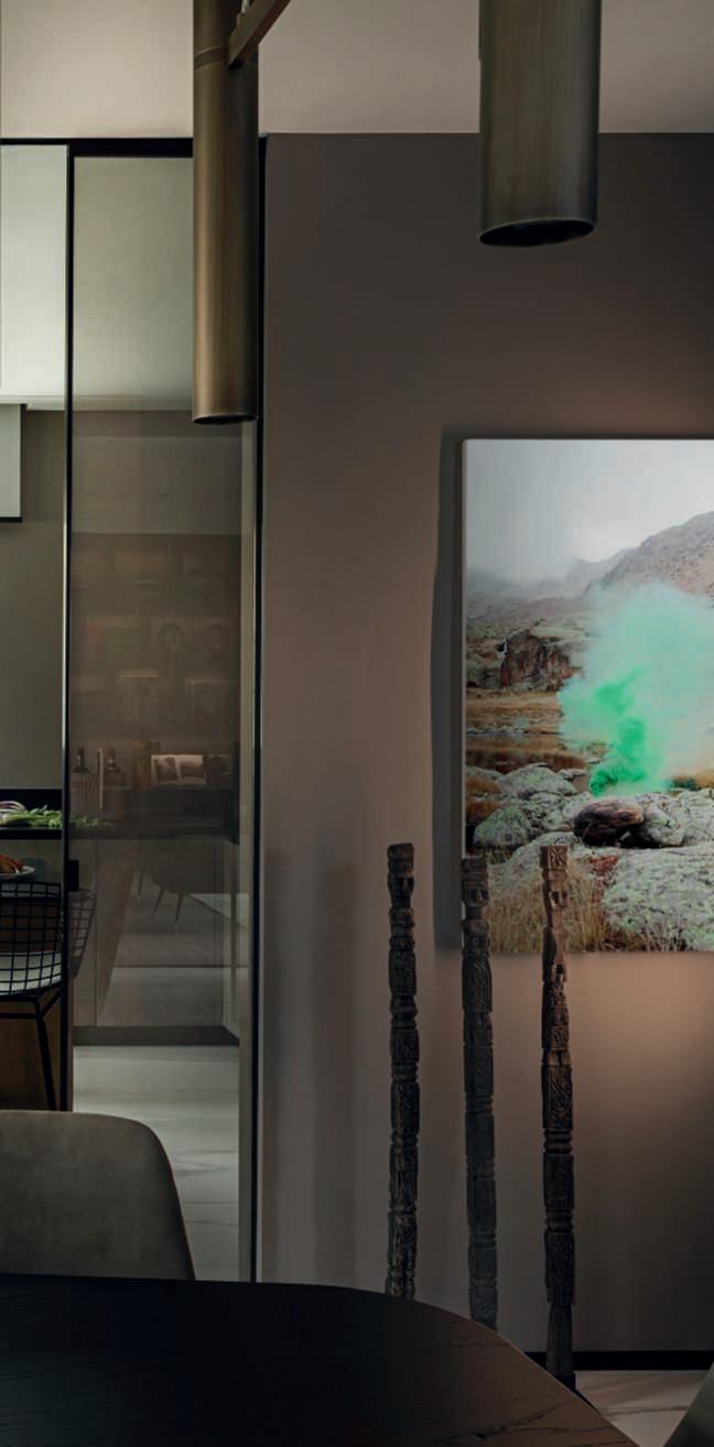 Imprescindibileilcolorterracotta,chesideclinaversoil mattone,ilkaki,ilmoka,l’aranciomaancheilgialloeil rosa,inuna palette cromaticarilassanteperdarecarattere aunangolounpo’anonimo.Ilterracotta,comeglialtri coloridellaterra,siaccostabenealletonalitànaturalidel verde, del salvia, del muschio e del verde pino. NonpuòmancareilcolorePantonedell’anno,ilVivaMagenta,unrossocarminioconsfumatureviolaceecheaggiungeuntoccodienergiaeottimismonell’interiordesign. Latonalitàsisposabeneconviola,bluegrigioedèstata declinatasututtiimaterialieognielementodecorativo, dalleparetiaidivani,dallalibreriaagliapparecchidiilluminazione. ● AlexandraGriotti