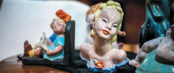 Nelle foto della pagina di sinistra,inalto,la Panca Etrusca, all’internodiuna nicchia; in basso, Demetrao Cerere,deadellemessi,che simboleggia le artifemminili.