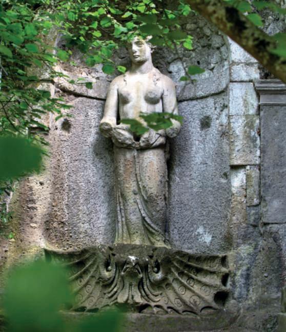 Nelle foto della pagina di sinistra,inalto,asinistra,la Furia, una donna con coda e ali di drago, a destra uno dei due orsi all’ingresso del Piazzale delle Pigne e delle ghiandechesimboleggiavano, rispettivamente la morte e l’età dell’oro e la prosperità. Nelle foto di questa pagina, in alto Persefone o Proserpina e, alle sue spalle, di fianco alla