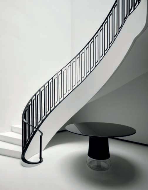 Nellapaginadisinistrae,in questapagina,inalto,la sala dapranzo dirappresentanza. Lampadario di VincenzoDe Cotiis, sedieLuna di Holly Hunt e tavolo customdi Burdifilek.Nelcorridoio, PancaXY di HollyHunt.Quiasinistra, larampadiscalecheconduce alpianosuperiore. Tavolo rotondoalampadina Bulb di EricSchmitt per RalphPucci Quisopra,l’accessoalsecondo piano,con operascultorea tridimensionale di DennisLin e credenza inpietrarealizzata sumisurada Burdifilek