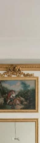 Onthispage,the dining area and,inthebackground, the kitchen,alsoshownon therightupperleftpage andbelow.Thisroomofthe housewascustomdesigned by DoraHart andcreatedin collaborationwith LaFabrique Verdrel forthe eucalyptus wood cabinets and mirrored plinth and Ringot&Villarecci forthe marble fnishes,custom decorativemetalliceffect paint by AtelierMériguet-Carrère, Meljac switches,and Globewall sconces by Marie VictoireWinckler.