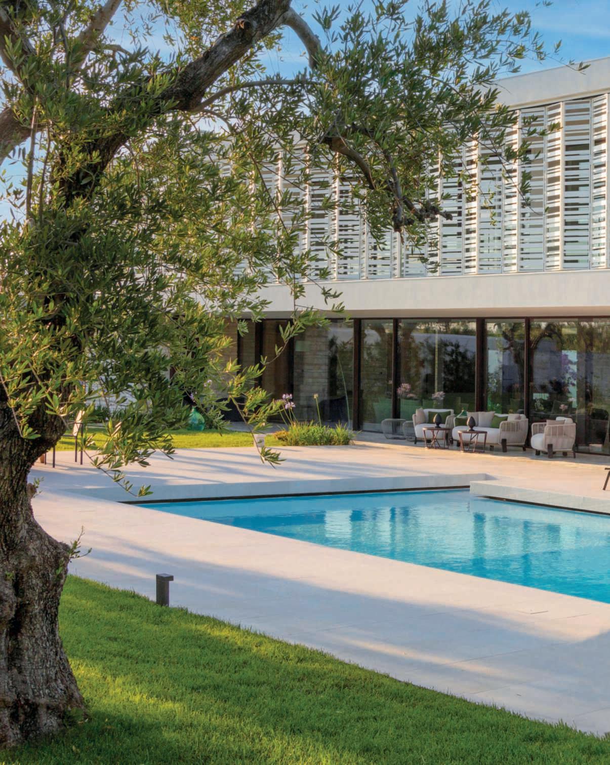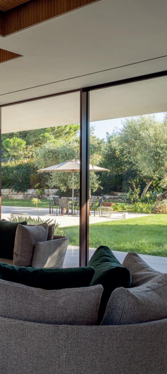 Exuberanceandrationality.Theessentialvolumesofavilladesignedby EsseelleAssociatiengageindialoguewiththesoftlinesofaMediterranean garden byGianni Birardi, creating a residence full of charm. TheTraneseareaisrenownedforitswonderfullandscape,typicallyMediterranean,anditssignificanthistoricalheritage,featuringabreathtaking successionofcastles,cathedrals,smallharbours,andpicturesquevillages.In thiscontextrichinbeautyandtraditions,thearchitecturalprojectbytheBaribasedstudioEsseelleAssociatistandsoutforitsmodernity,bothaestheticand functional, incorporating solutions and details related to the typical local materialsandtheclimateofthearea,givingthevillaadistinctiveidentity.The residenceisspreadovertwolevels,thefirstofwhichservingasthelivingarea, whilethesecondhousesthebedrooms;eachlevelischaracterisedbyadifferent treatmentrespondingtospecificneeds,yetmaintainingoverallcoherence.The largeterraceonthefirstflooriscladwithfoldingbrise-soleilwhosetexture, basedontherhythmicalternationofsolidsandvoids,softensthestrictnessof the volume. This solution, designed primarily to screen direct light and protect the bedrooms from the summer heat, gives the building a pleasing materiality. Onthegroundfloor,theownerswantedaseamlessconnectionwiththeoutside.Therefore,thearchitectsopted,onthetwomainfacadesoverlookingthe garden,foracontinuousglasswall,whichlightingtheperceptionofthevolume andcreatingasuspendedeffectfortheupperfloor,offersasuggestivefusion betweenthelivingareaandtheexuberantMediterraneangardendesignedby GianniBirardi.“Theclients,”explainsthegardendesigner,“wantedthegardentobeadmiredthroughthosewindowsasifitwereapainting”.ThenaturallandscapeofPuglia,withitsancientolivetrees,thepristineseainendless shadesofblue,andthefragrantMediterraneanplantsservedastheprimary inspirationforhiswork.Fromthesesuggestions,creativelyreinterpretedwitha precioussensitivity,Birardicreatedaseriesofscenariosdesignedasalabyrinth ofwelcomingoases,capableofsatisfyingallthesensesandinvitingareturn toharmonywithnature,rediscoveringthesimplicity,serenity,andwell-being thatonlyanauthenticandenvelopinggreenspacecanoffer.Allofthiswas done withrespect for the ecosystem and the natural cycle of the seasons.