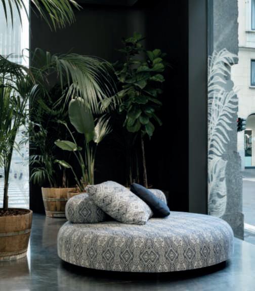 BubbleRock èundivano dall’aspettoanticonvenzionale e dalle forme morbide,firmato PieroLissoni.Quiconrivestimento acrilico Fes, pattern floreali dalle nuances delicate, per spazi indoor e outdoor.