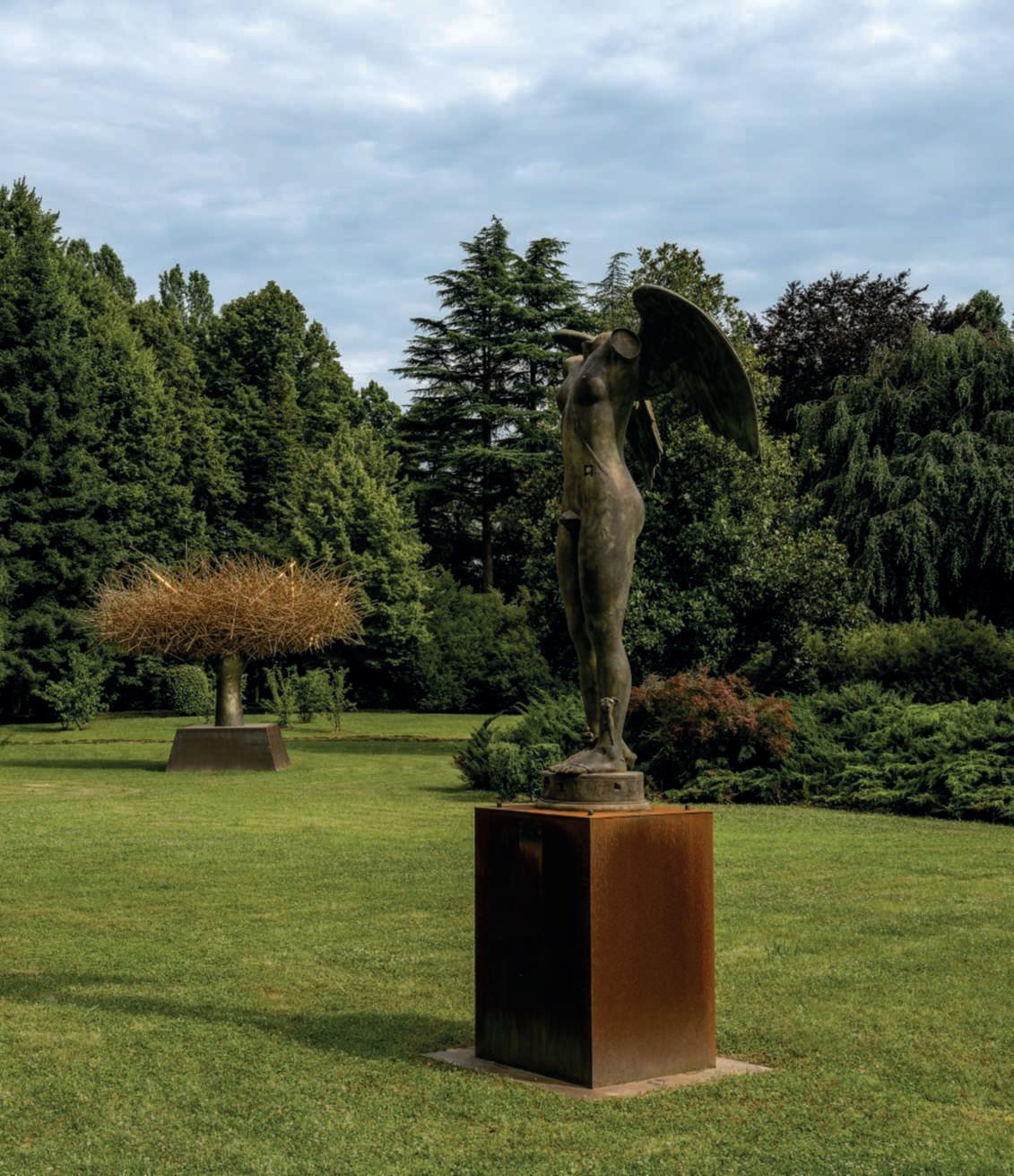 ArtinthespotlightatVillaFürstenberg.Theinnovativevisionof ErnestoFürstenbergFassio,PresidentofBancaIfis,renewsthe gardenofthehistoricfamilyvillawithapermanentdisplayof sculpturesbyinternationalartists. Theparkofthe16th-century VillaFürstenberg,thehistoricalheadquartersoftheBancaIfis GroupinMestre,istransformedintoanopen-airartworkthrough aprestigiouspermanentexhibitiondedicatedtocontemporary art.TheprojectwaspromotedbythePresidentofBancaIfis, ErnestoFürstenbergFassio,ttocelebratethe40thanniversary ofthechallengerbank.Thecollection,whichwillbeincreased everyyear,isacelebrationofthecreativityofinternationally renownedcontemporaryartists.WorksbymasterssuchasBotero,Mitoraj,Atchugarry,Consagra,MorrisandColbertadorn thisspace,givingatouchofmodernityandinnovationtothe monumentalpark,overtwenty-twohectaresrichinbiodiversity. Theexhibitionroutestartsattheentranceofthevilla,where IgorMitoraj’smajesticsculpture‘Teseoscrepolato’hasbeen placed,andthenguidesthevisitorthroughthepark,offering animmersiveexperience,suspendedbetweenartandnature inconstantdialogue,andpromotingreflectionandinspiration. ThespacesoftheInternationalSculpturePark,opentothepublicfromspring2024,arealsointendedtobeanopen-airworkshopfortheItalianPavilionoftheVeniceBiennaleandwillsee newsculptures,includingmonumentalones,addedeveryyear, inordertocontinuetostimulatetherelationshipbetweenart and garden, a distinctive element of the entire initiative. Onthepreviouspage,‘BronzeStack9ViridianGrey’, AnnieMorris;onthesepages,‘Ikaria’andI’karoAlato’,IgorMitoraj;‘Clio Dorada’, ManoloValdes. ■