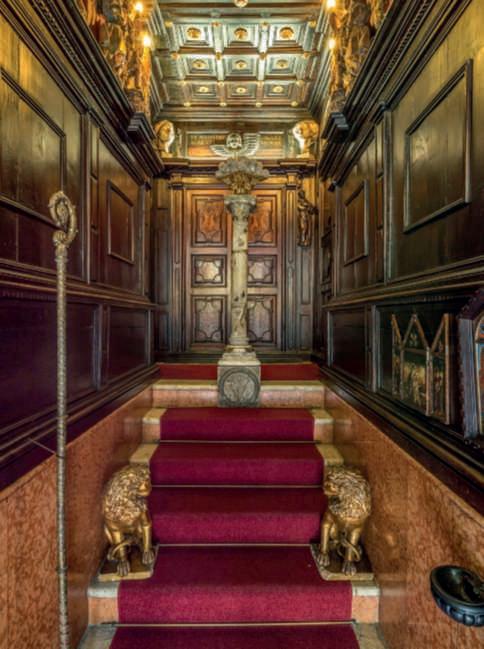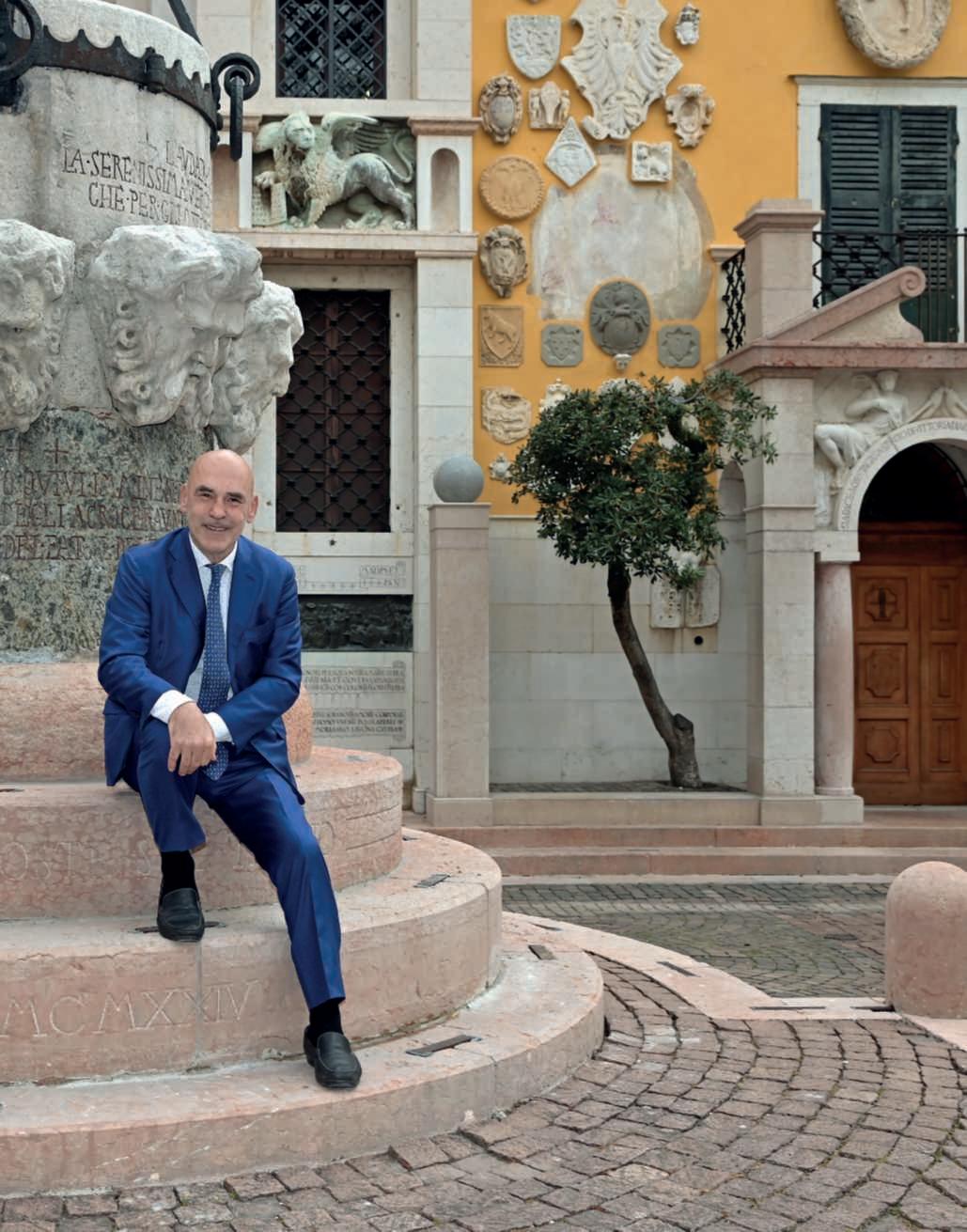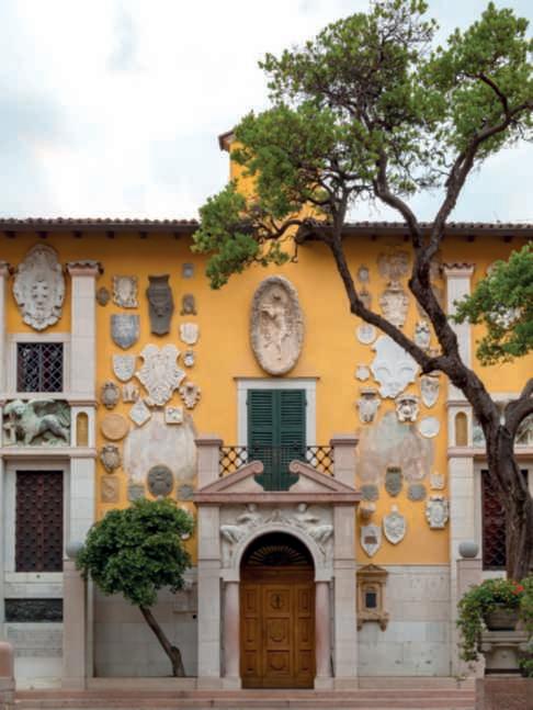 Inthisphoto, Giordano BrunoGuerri, historian and PresidentoftheFondazione IlVittoriale degli Italiani, portrayedinthePiazzetta Dalmata(Photo@Augusto Rizza).Ontherightpage, above,the entrancetoLa Prioria,thehomeofGabriele d’Annunzio, who liked to call himselftheFriarPrior;below, the entrancehall