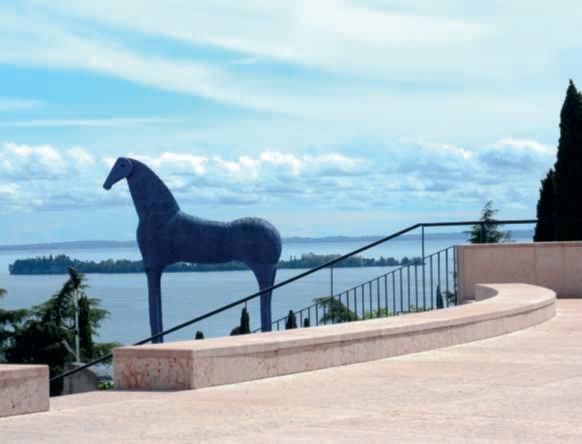 Puglia surrounded by olive andcypresstrees,symbolic plantsof the place,andthen the Vallettadell’Acquasavia andthe LaghettodelleDanze. Immediately to the right of theMausoleo,theshelterof the MAS96 (anti-submarine motorboat),usedbyd’AnnunziofortheBeffadiBuccari, canbeseen.Inthecentre, La Prioriaanditsgardens.The hill also enjoys a panoramic viewof the lake.