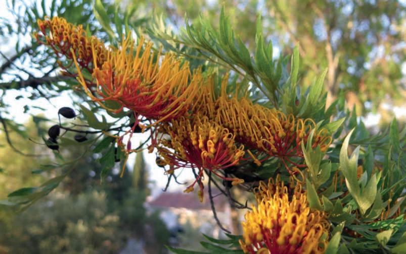 TheexoticcharmofGrevillea.GrevilleaareplantsnativetoAustralia, loved for the beauty of their and flowers and versatility. Inthemid-1980s,thefirstAustralianspeciesbegantoappearinthe cataloguesofsomeItaliannurseries,producedtoexpandthebotanicalassortment,butalsofortheirmorphologicalcharacteristics,which blendwellwithMediterraneanmaquisplants.Theyhavethickleaves richinessentialoils,acompacthabitthatdoesnotrequiremuchpruningandrootsthatleaddeepintothesoil.Similaralsoincultivation, theyarerusticandextremelyresistanttodirectlightradiation,heat, dryness,windandsaltiness.Lovedorhatedbylandscapers,todaythey aremanyandwidespreadandamongthemoneofmyfavouritegenera isundoubtedlyGrevillea.Thankstoitsversatilityandtheshapeandcolourofitsflowers,italwaysmanagestobeagoodsolutionforterracesor inthegardens,especiallytheonesofholidayhomesbythesea.Itbelongs totheProteaceaefamilyandhas250species,treesandshrubs,evergreen,mostofwhichoriginatefromthesouth-westerncornerofAustralia.Somespeciesgrowfromaligno-tuber,athickeningatthebaseof thetrunkthatstoresnutrientsandprotectsnewbudsafterdestructive