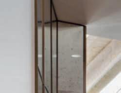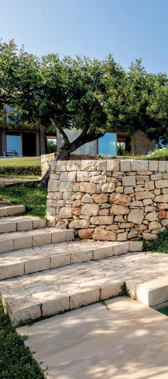 naturalepernobilitarnemaggiormentelasuperficie.Questisonostati sapientementealternatiastratidijutaecalcenaturaletrattatimanualmente,cheoffronoall’insiemeunaspettodistintoeaccogliente, incontrastoconlapavimentazioneincementoindustrialeelicotterato e con la parete della zona cucina rivestita interamente in ferro. Tuttigliambientiinternisonoservitidaunimpiantodiventilazionemeccanicacontrollata,cheassicurailregolarericambiodeiflussi d’ariaeregolal’umiditàgarantendoilmassimoconfort.“Abbiamo vissutopermoltianniinmontagna,inunabaitainmezzoaiboschi econtinuiamoafarloininverno.Questocontattoconlanaturaha aumentatolanostrasensibilitàecologica.Abbiamoquindisviluppato unavisionepercui,necessariamente,lenuovecostruzionieimaterialiutilizzatinondevonofareviolenzaall’ecosistema.Èfondamentale quindirispettareilluogo,evitandoilpiùpossibileglispostamentidi materialieintegrandoilcostruitoconl’ambiente,secondounprincipio di massima parsimonia nello sfruttamento e nel consumo delle risorsenaturali.Pernoiquestoèl’unicomodopossibilediviveree quindidifarearchitettura”.Questositraducenellaricercadiconnubiotraesteticaesostenibilitàchesiritrovaanchenelgiardino,dove lepianteutilizzateemesseadimora,unaauna,daBruno,sonostate scelteinmododaridurrelarichiestadiacqua.Sitratta,infatti,di pianteprevalentementeautoctoneearido-resistenti,conscarseesigenzeidriche.Lasceltadellamassimanaturalezzasiritrovaanche nellapiscinadi20metripertre,strettaelungaperassecondarela morfologiadelterreno.Unafrescaepiacevoleoasi,checonsentedi goderedellapiacevolezzadiun’acquanontrattataconagentichimici. Lasuadepurazionevieneinfattirealizzatatramitelepiantepostein ungraziosolaghettocomunicantemafisicamenteseparatodallapiscina mediante un tipico muro in pietra posata a secco.