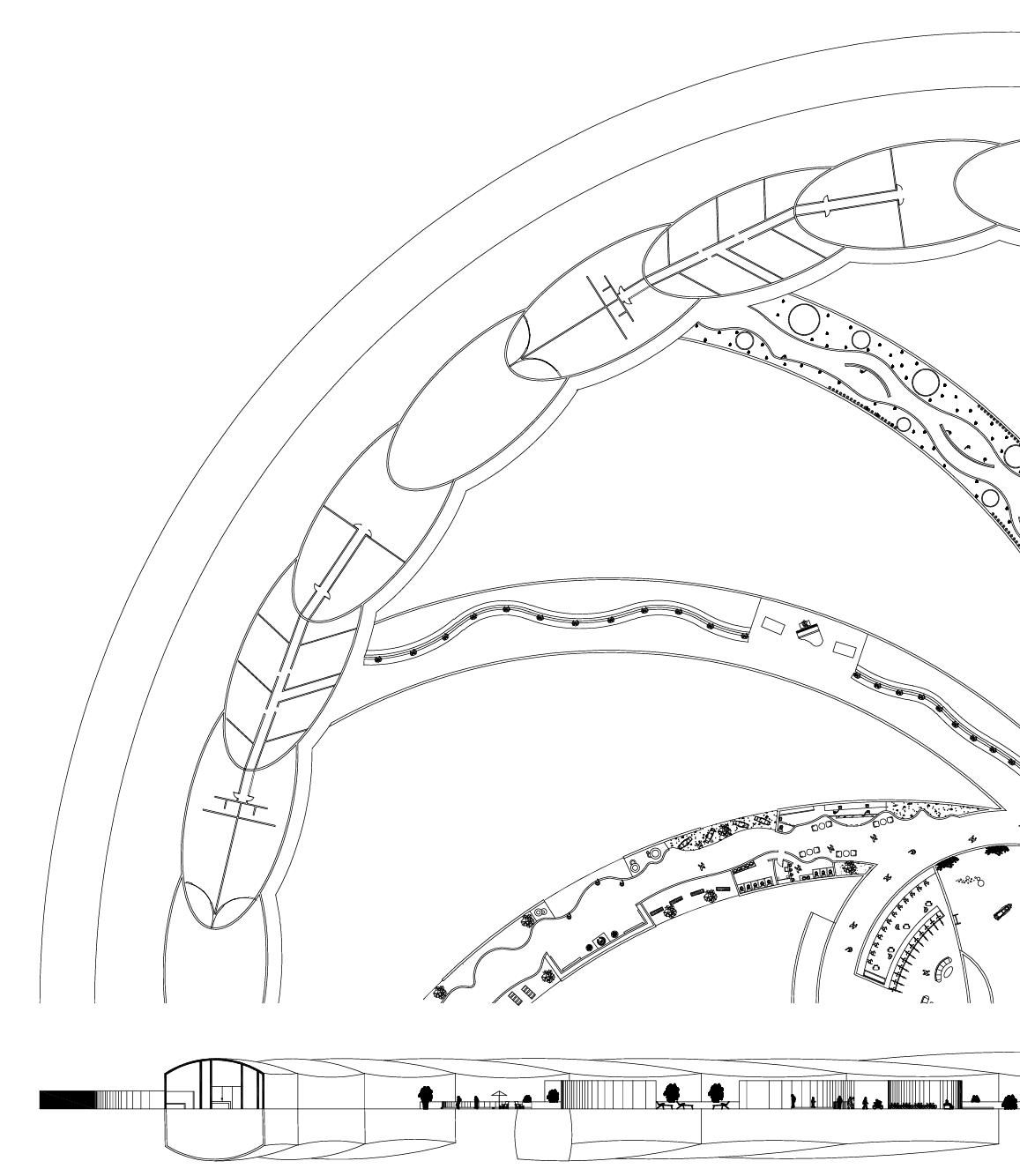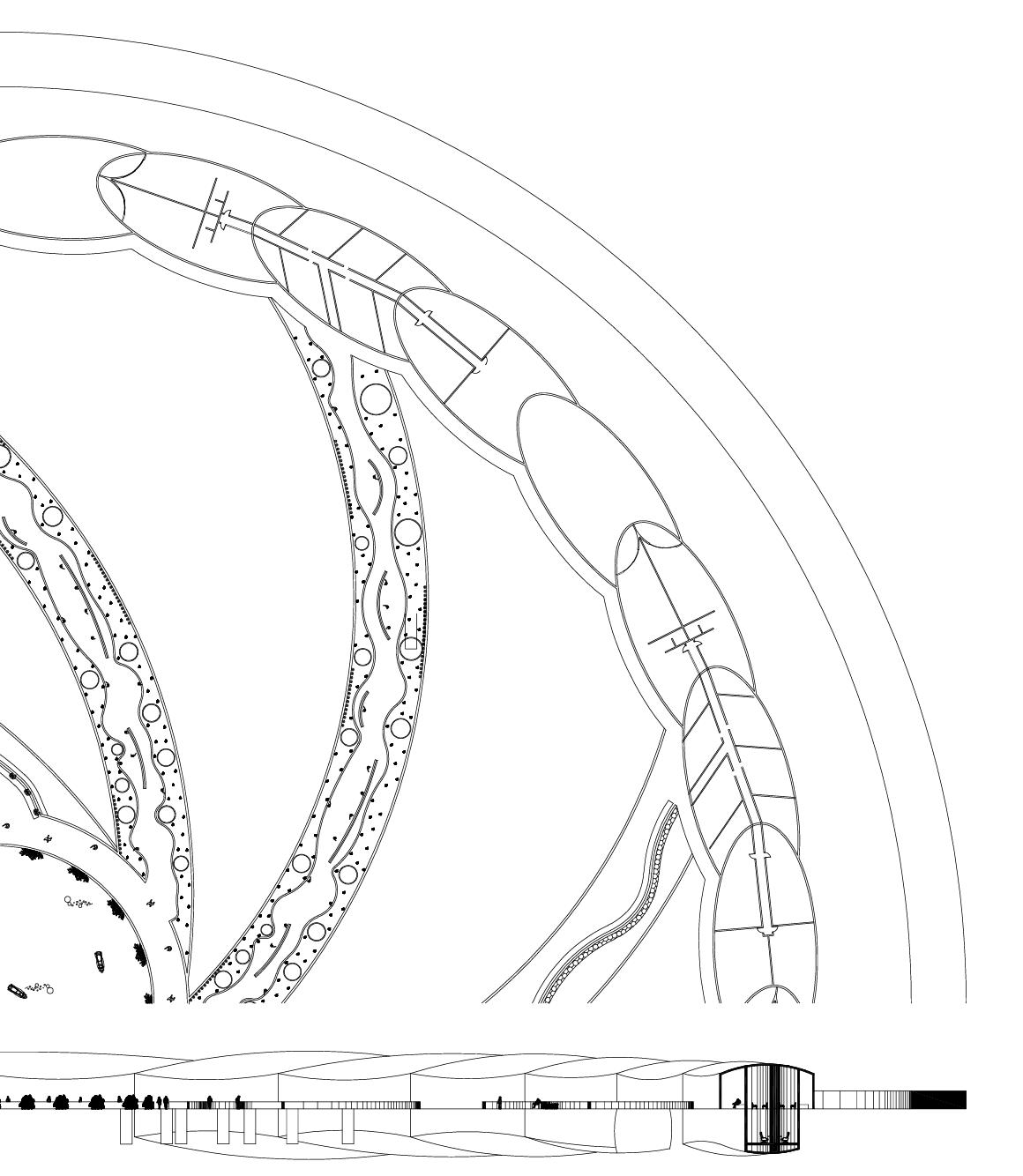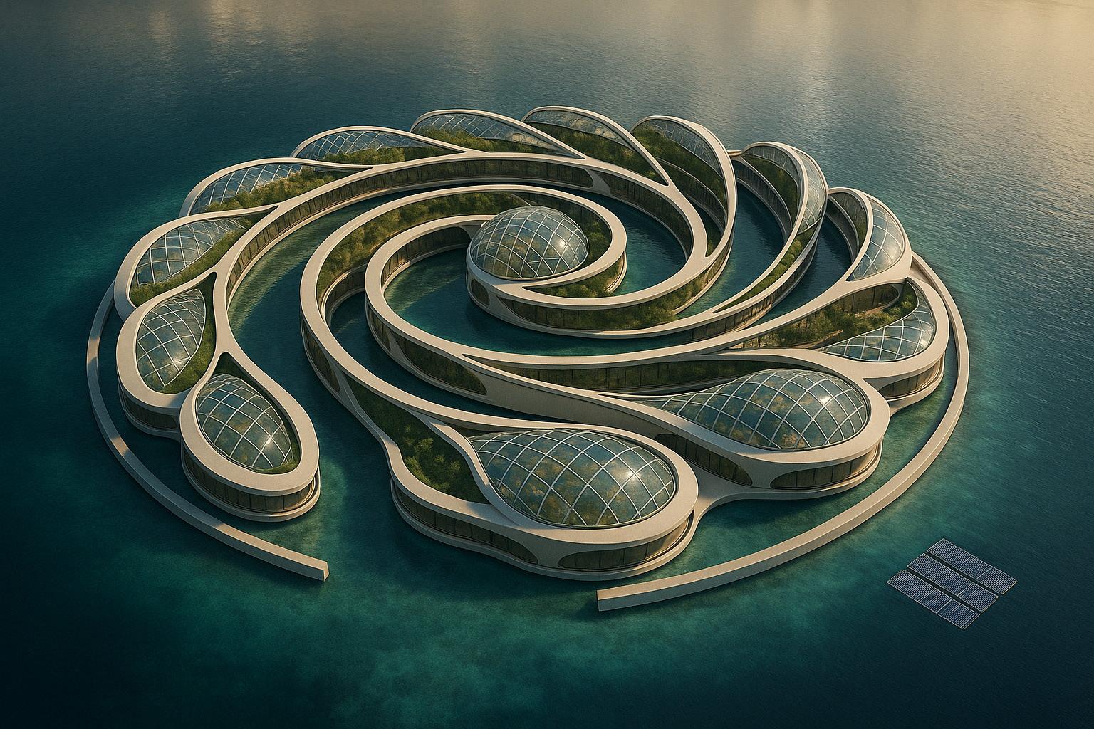 El proyecto investiga sistemas estructurales modulares, plataformas flotantes interconectadas y estrategias energéticas autónomas, incluyendo captación solar y potencial integración de tecnologías oceánicas. Se plantea una organización urbana basada en nodos funcionales: vivienda, producción, recreación y servicios.