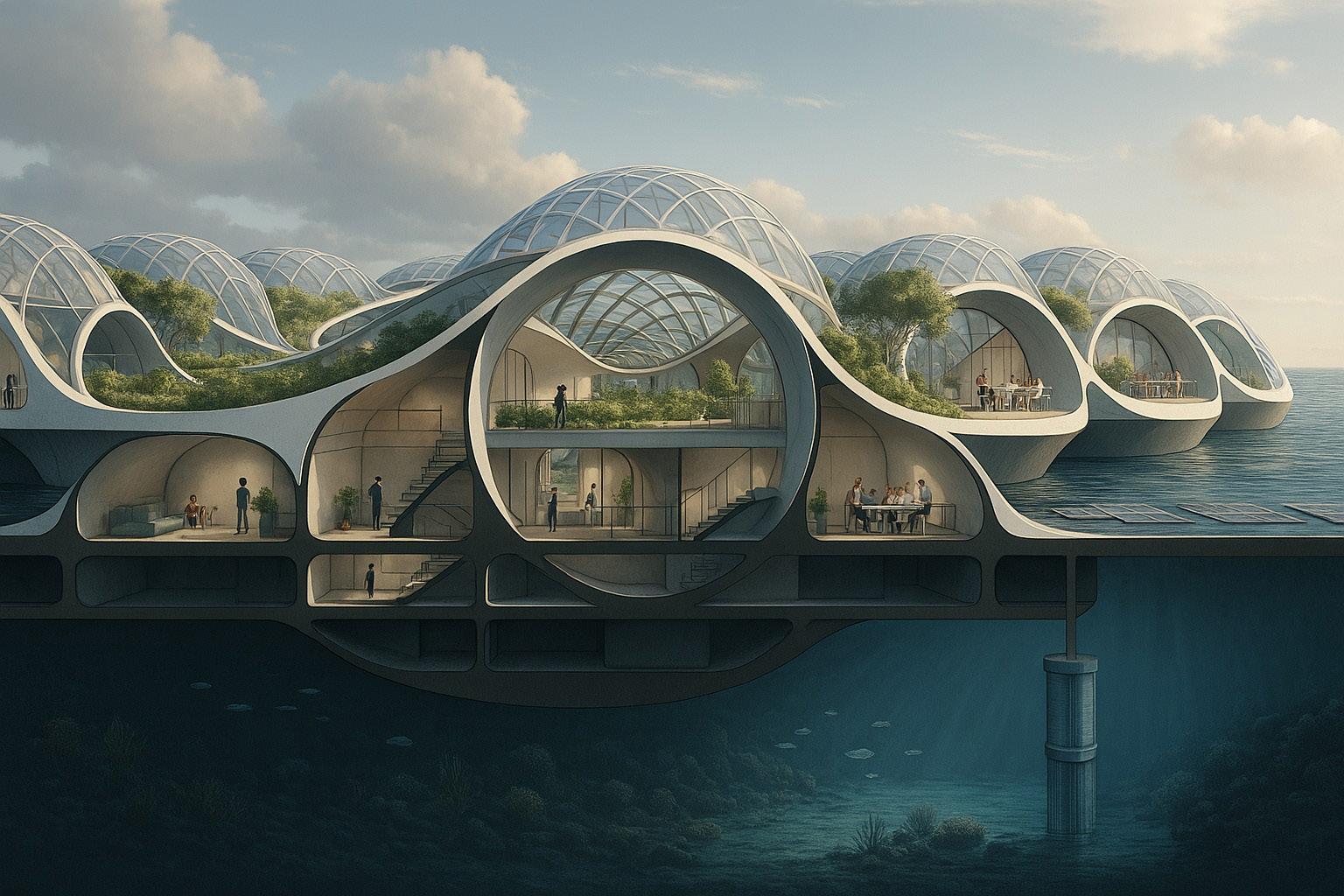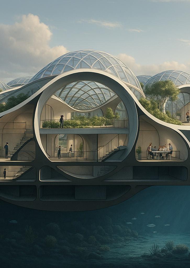 La Ciudad Marina explora un modelo de asentamiento flotante y modular orientado a la resiliencia climática y la expansión sostenible del hábitat humano hacia el mar.