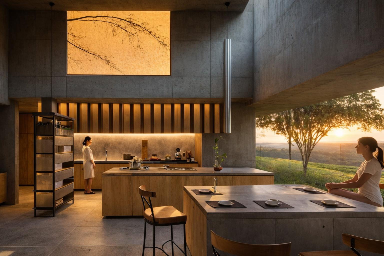 Este proyecto desarrolla una vivienda híbrida para un chef profesional cuya casa funciona simultáneamente como espacio doméstico y como lugar de talleres y degustación gastronómica.