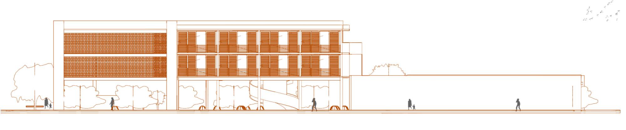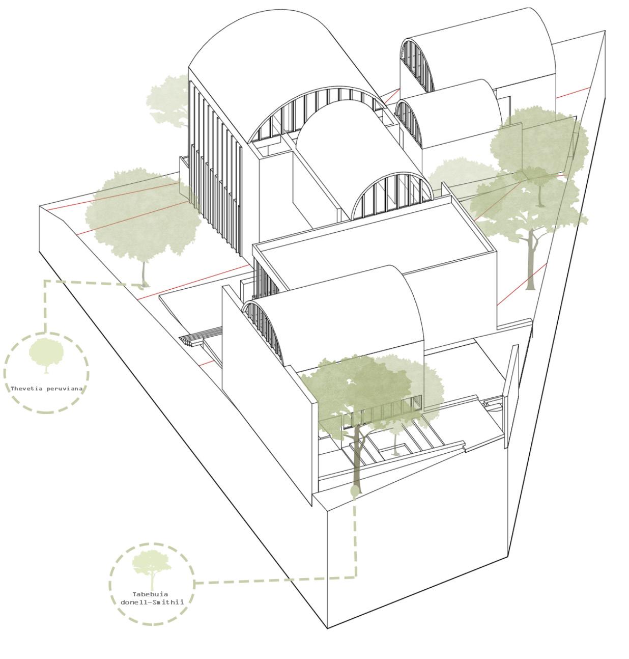 La propuesta desarrolla una estrategia volumétrica que optimiza la orientación, la protección solar y la ventilación cruzada. Se prioriza la generación de espacios intermedios, patios y sombras profundas que reduzcan la carga térmica y mejoren el confort pasivo.
