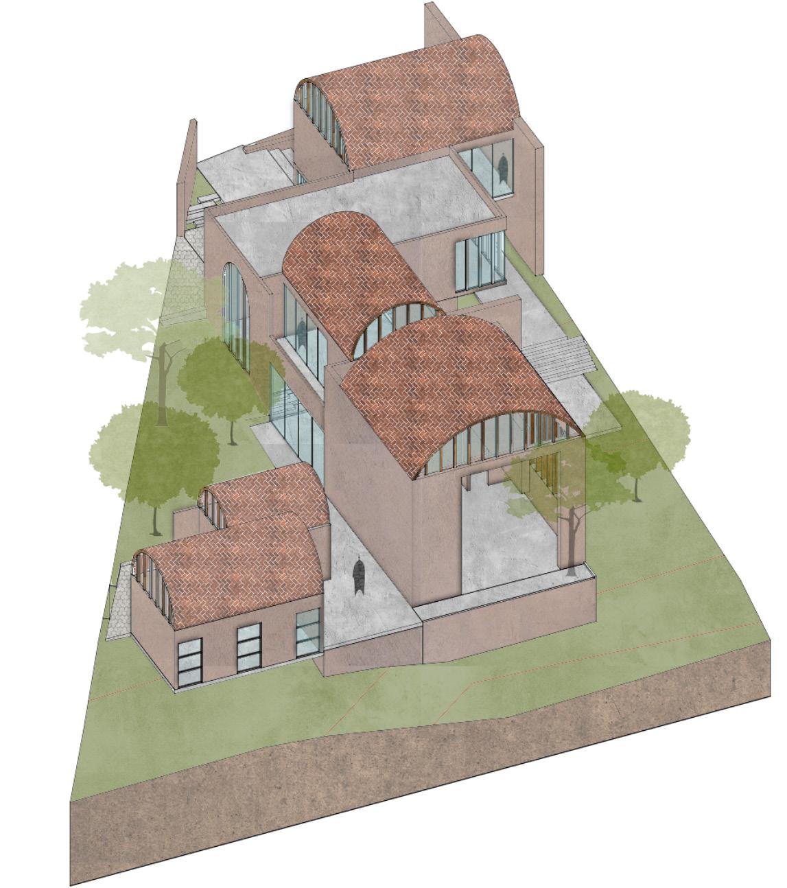 Formalmente, el proyecto parte de un bloque base que es intervenido mediante sustracciones y adiciones, como metáfora del proceso de recuperación humana: un cuerpo en transformación constante. Los vacíos permiten la entrada de luz y ventilación natural, generando espacios introspectivos, mientras que los volúmenes añadidos simbolizan redes de apoyo y crecimiento.