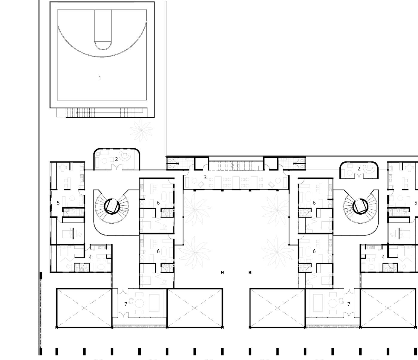 La organización programática busca equilibrar privacidad y comunidad, integrando circulaciones exteriores y áreas compartidas que favorezcan la interacción vecinal sin comprometer la intimidad doméstica.