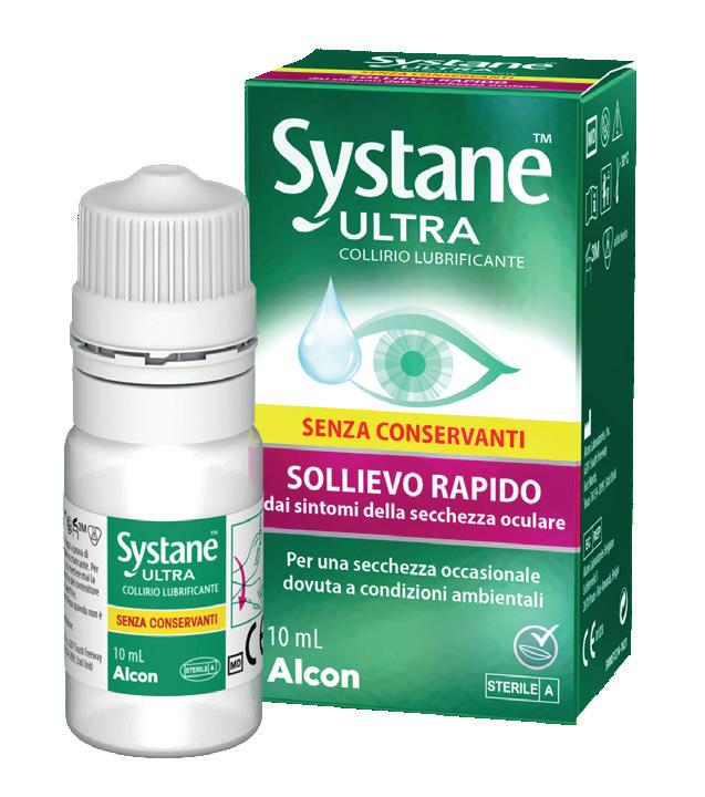 SENZA CONSERVANTI, Systane™ IDRA SENZA CONSERVANTI e Systane™ COMPLETE SENZA CONSERVANTI sono dispositivi medici CE0123. Consultare il foglietto illustrativo per l’utilizzo, le precauzioni, le avvertenze e le controindicazioni. ©2022 Alcon Inc. IT-SYZ-2200017 2 volte più lubrificante1* Ripristina lo strato mucinico-acquoso2 + ACIDO IALURONICO Sollievo fino ad 8 ore per tutti i tipi di Occhio Secco4 Agisce sullo strato mucinicoacquoso e lipidico del film lacrimale5 Capacità di trattenere l’idratazione 2 volte maggiore1* Contribuisce alla Riepitelizzazione Corneale3