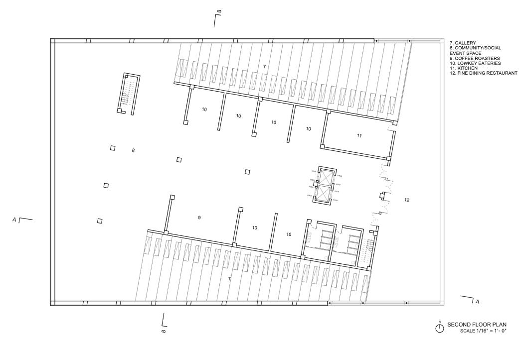 El Callejón is situated at the threshold between the privatized spectacle of the Crypto Arena and the Santee Alleyways of the Fashion District, a vibrant hub of informal Latinx commerce and culture whose energy contrasts sharply with the no-vendor zones that surround the arena. This condition shaped a strategy of subtraction, where a rectilinear mass was carved with voids scaled and oriented from Tony Smith’s Free Ride to produce a porous form. These voids multiply entry, structure circulation, and create spaces for gathering and light, aligning form with program. The result is a de-privatized architecture where void bridges social disruption and urban division, operating like an alleyway to restore access, connection, and community.