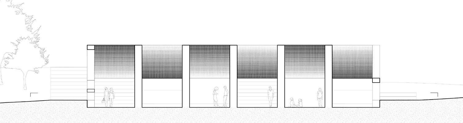 Challenging the rigidity of the square began with a single fold, cutting and reassembling to test how its form could be transformed. A film photograph followed, then a UC Berkeley tree leaf, reworked into a translucent pattern and applied to strips of folded squares black for opacity, film for translucency that defined the roof of a pavillion and the ground as six stripes of slope, step, hardscape, and softscape. Stacking then transformed roof into façade and structure, where diagrid, truss, and wall reemerged relentlessly at every scale, shifting from span to enclosure. The result is a Recreation Center where landscape folds into façade and exterior blurs with interior, creating active courts, fitness spaces, and gathering areas within a system that redefines the square as open and dynamic.