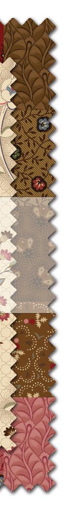 483 BROADWAY, NEW YORK, NY 10013 1-800-548-8295 • FAX (212) 354-5245 www.marcusfabrics.com 100% COTTON • 44/45” WIDE 15 YD. PCS. D/R FACE OUT Machine Wash Cold, Mild Detergent, Delicate Cycle, Tumble Dry Low, Remove Promptly, Do Not Bleach. Vintage Charm by Judie Rothermel 20 SKUs • 10 yard case pack: R12E327-0200 This pattern is a future publication. While every effort is made to provide accurate yardage requirements, they are subject to change after editing. Please refer to final pa ern when ki ng. Quilt Size Approximately : 72” x 72” 2022-Q4-08 Delivery: May 2023 Vintage Charm Visit MarcusFabrics.com for Yardages FREE PROJECT