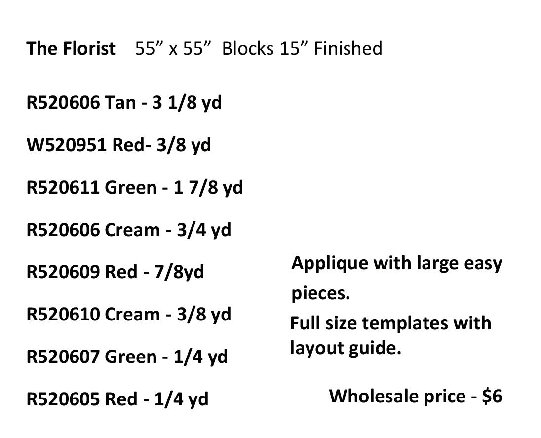 R220645-Green 1/6 yd R220645-Tan 2/3 yd R220646-Red 1/6 yd R220646-Tan 1/6 yd