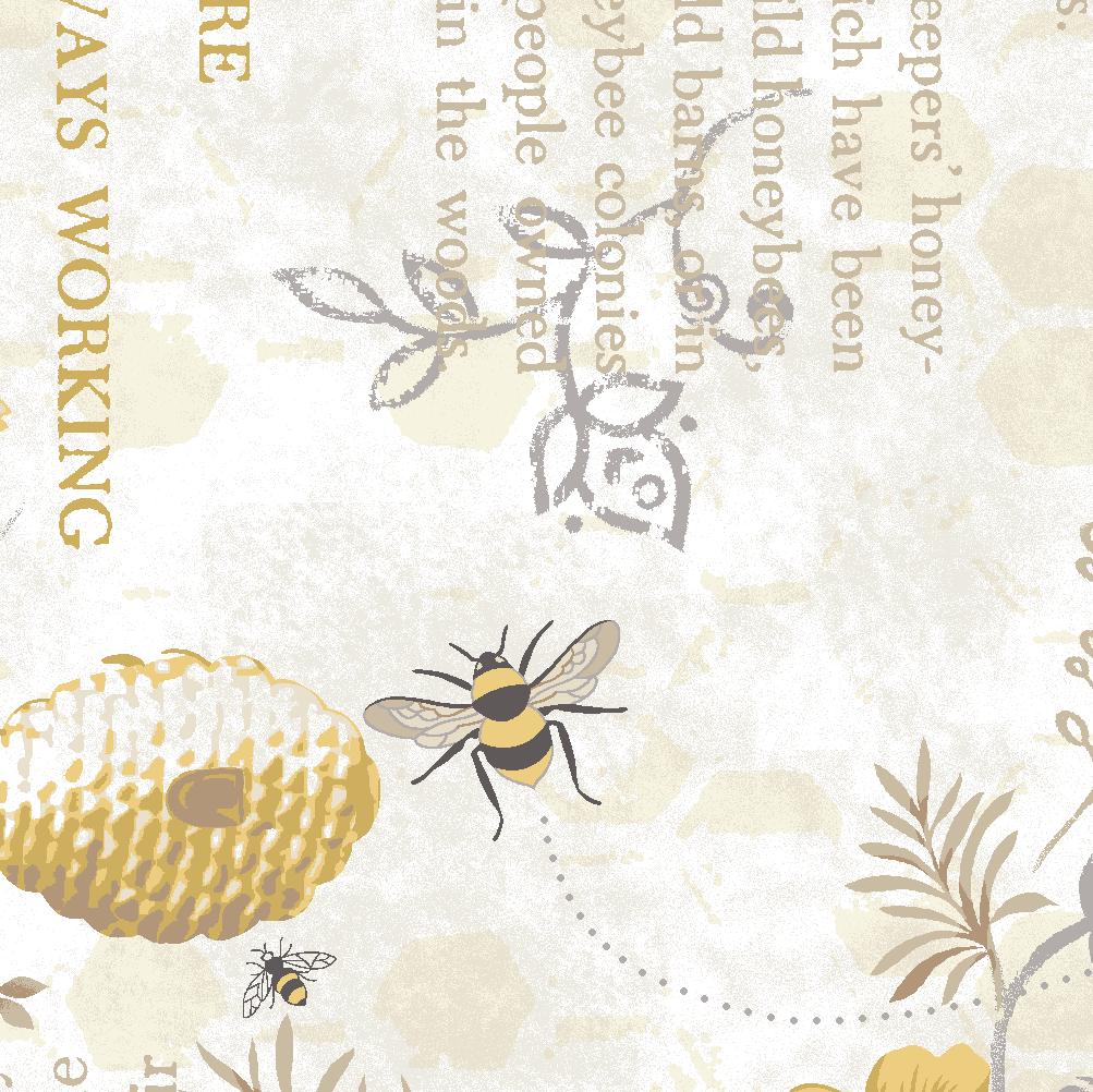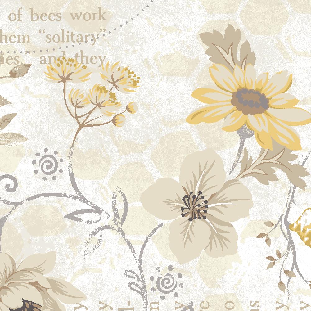Laura Berringer’s new collection is made for lovers of bees! She blends realistic bee motifs with delicate florals, a honeycomb pattern, gentle textures and a gorgeous, multidirectional text design, all in shades of soft yellows and beiges with dove grey. Create quilts, as well as kitchen and garden accessories and more.