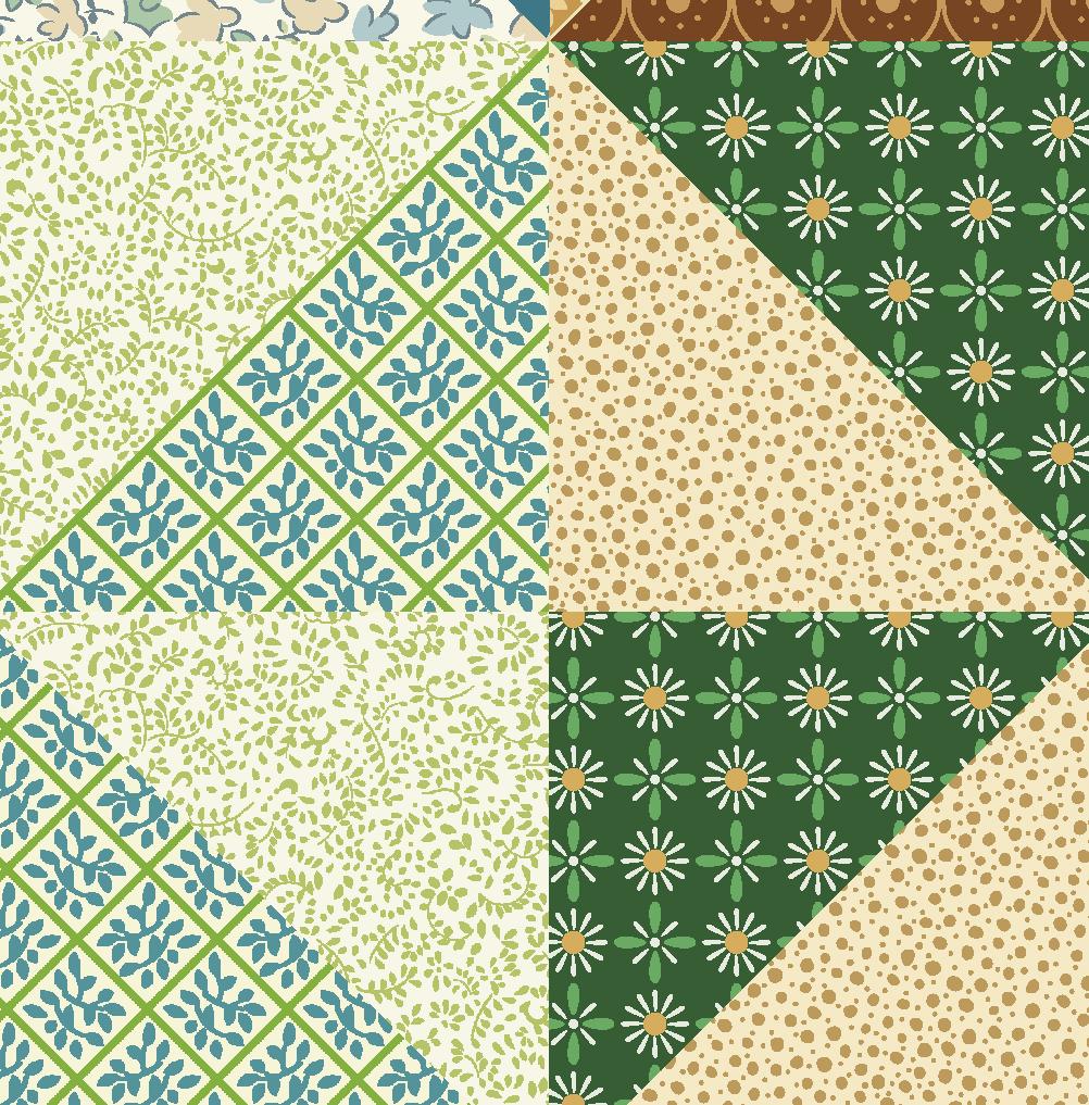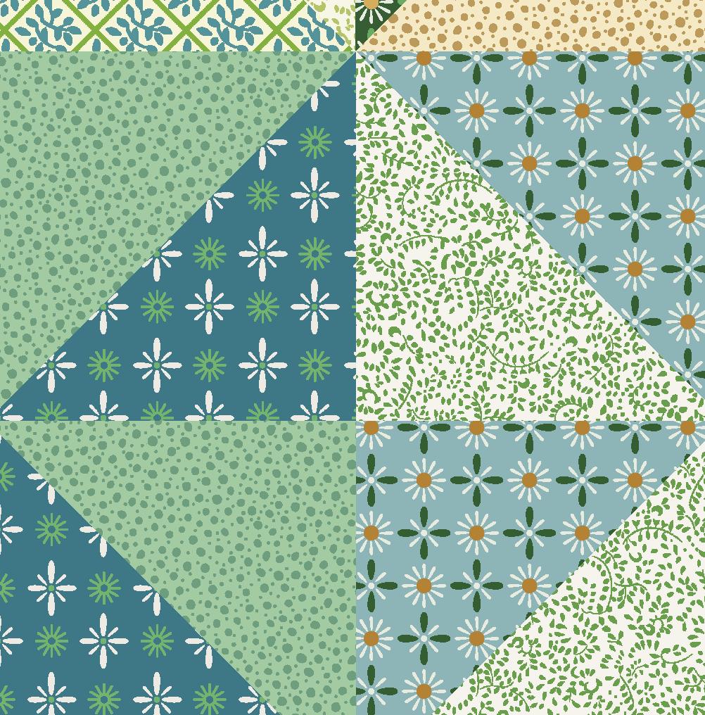 Beautifully coordinated, classic calicos in shades of teal, green, and with warm honey and tan combine to create quilts and more with a throwback appeal to fit our modern sensibilities. The engineered Pin Wheel print gives even beginning quilters a foolproof result! The collection is inspired by, and named for the mother of Marcus Fabrics’ director, Kristin McCartney, and her own treasured quilt.