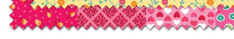 The first thing you’ll notice about this cheerful group is the beautifully coordinated palette of mid-brights. The colors draw you in to appreciate the miniature hearts, flowers and geometrics. Create your favorite mixmatch combos for eye-catching quilts, home accents, accessories and girl’s dresses!