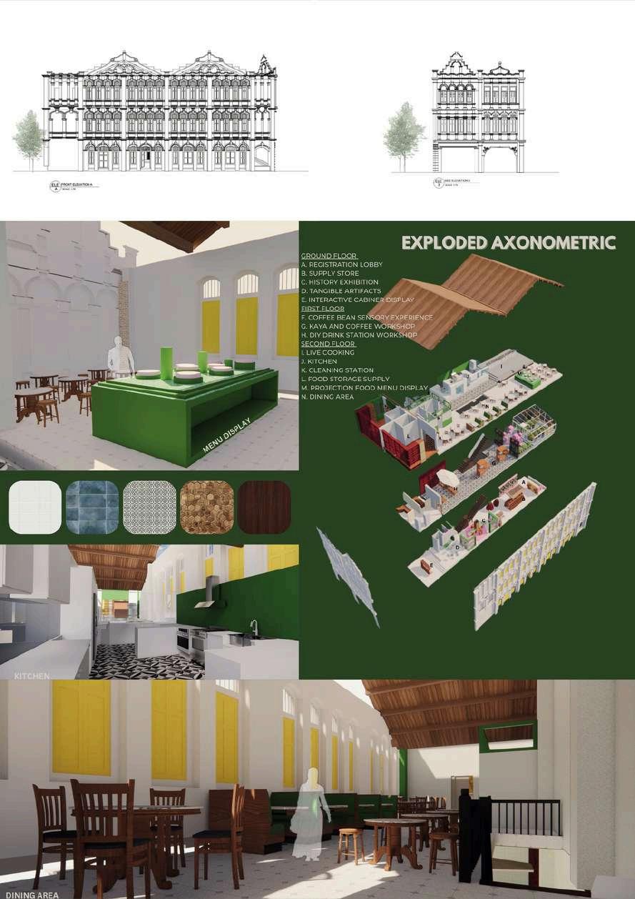 The design integrates a bicycle structure with a small cabinet, drawers, and foldable tables and chairs, creating a mobile, compact drink station. This innovative piece reflects the spirit of kopitiams, where food and drinks are shared in communal spaces, and everything is built for practicality and accessibility. Designed to facilitate an engaging, hands-on experience that serves as a drink-making station where guests, both tourists and local families, can learn to prepare famous kopitiam drinks like kopi, teh, or milo. The foldable tables and chairs create an inviting space for visitors to sit, enjoy, and appreciate the cultural significance of kopitiams as social spaces. Its versatility also allows it to be used in various interactive exhibits, reflecting the flexibility and communal nature of kopitiams in Malaysia