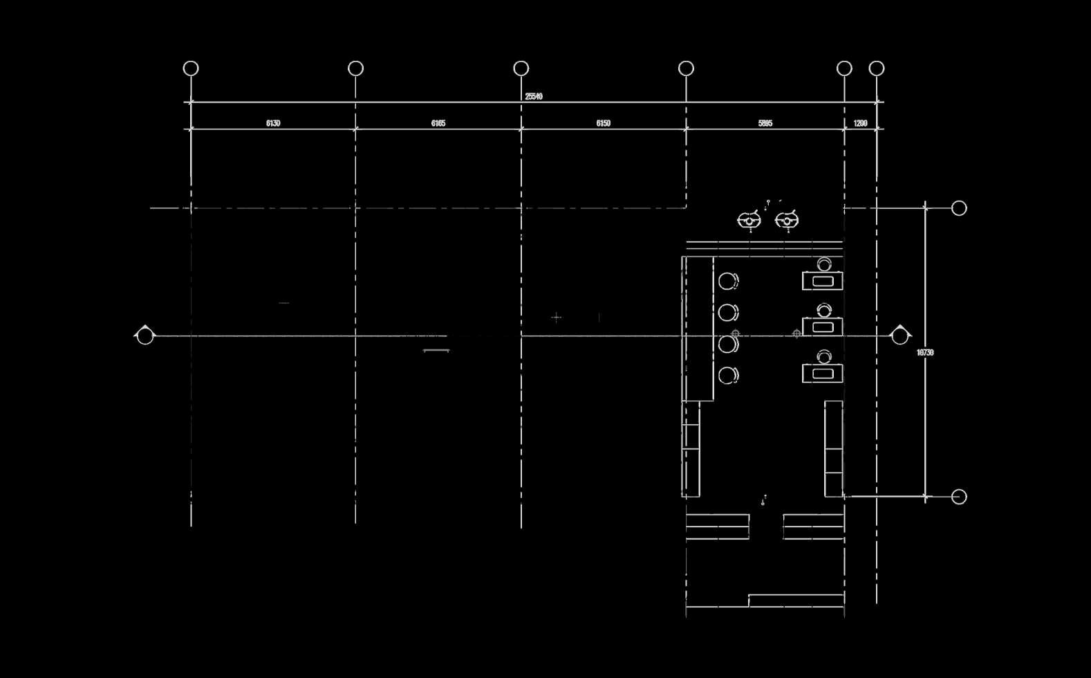 A collection of working drawings for the Glassbox student hub, including the setting-out plan, furniture layout, reflected ceiling plan, longitudinal section, bespoke detail and detailed schedules.