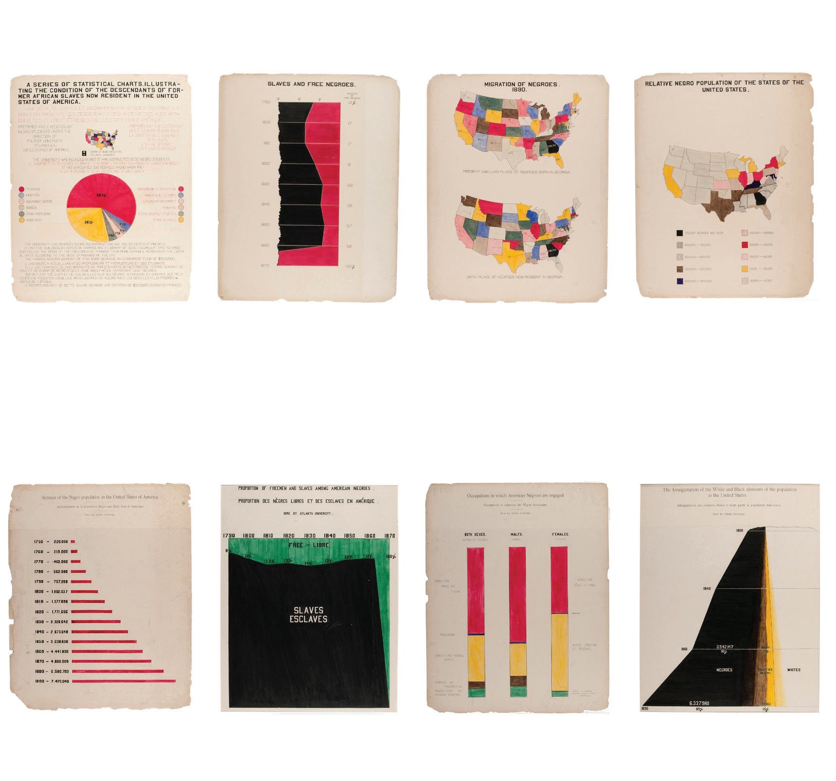 Back cover: Various depictions of statistical data drawn and designed by W. E. B. Du Bois, c. 1900. Courtesy of Library of Congress. See The Philadelphia Negro, page 12.