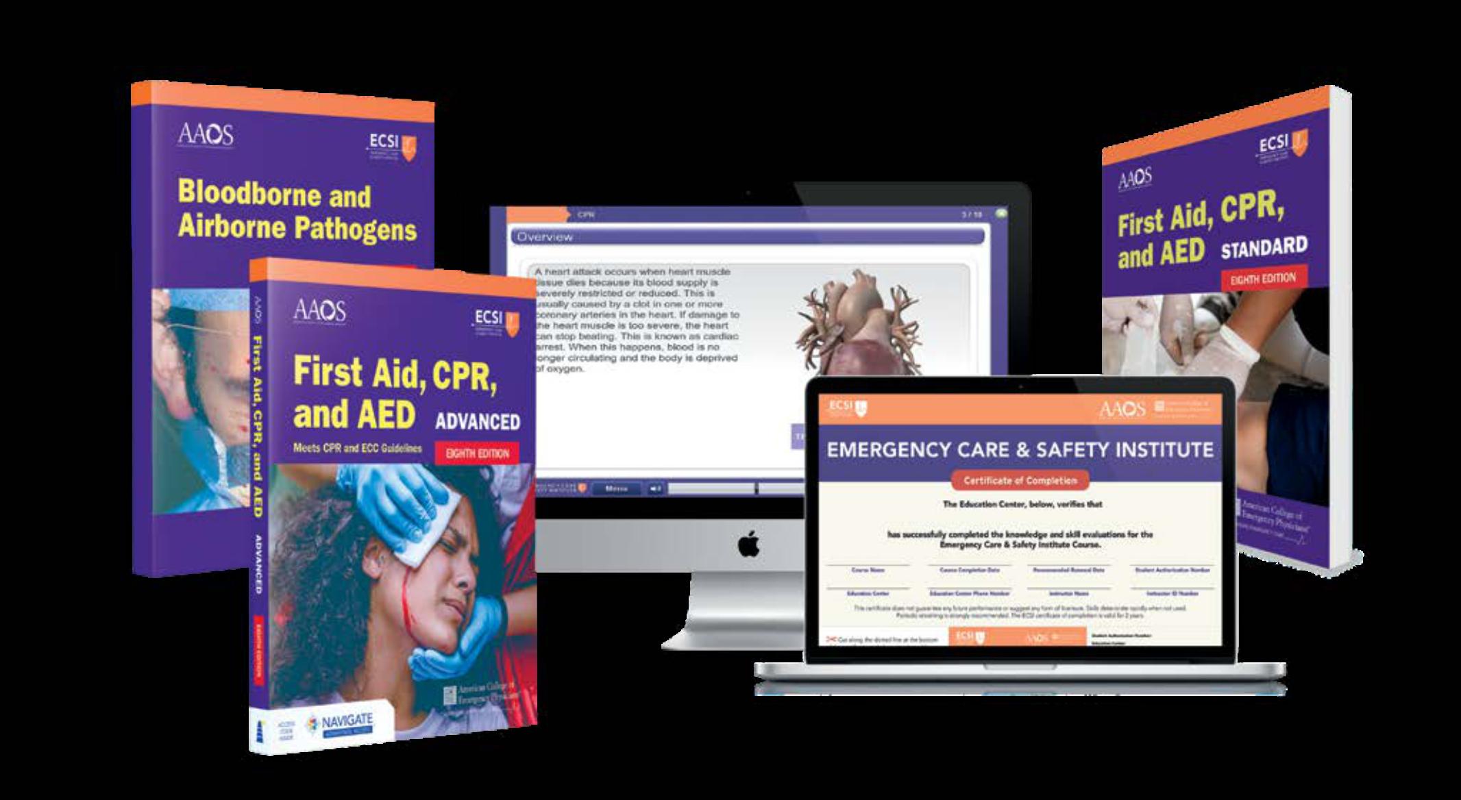 Our highly developed, full-color student manuals feature the latest medical content and are filled with tips and tools to engage your students. ECSI manuals are also available in electronic (eBook) formats to provide an economical and environmentally friendly alternative to traditional printed manuals. Finally, our pocket-sized guides are available for first aid and CPR refresher training.