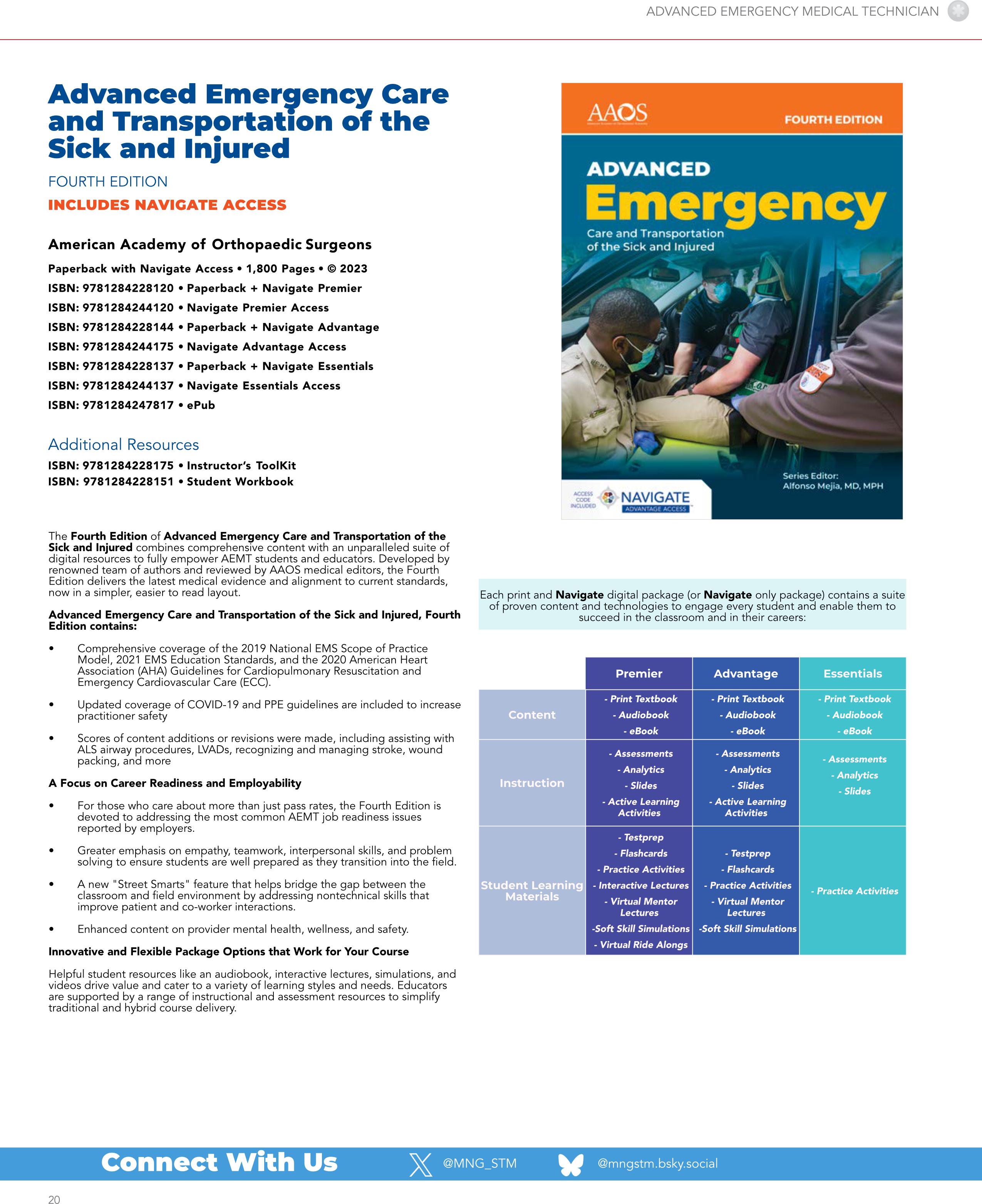 Clear Application to Real-World Experiences. Realistic case studies and Voices of Experience sections in every chapter compel students to think critically, apply their learning, and expand their thinking on how to best meet day-to-day EMS challenges. Additionally, this edition addresses soft skills, personal safety, mental health, crew resource management, and the value of peer support.