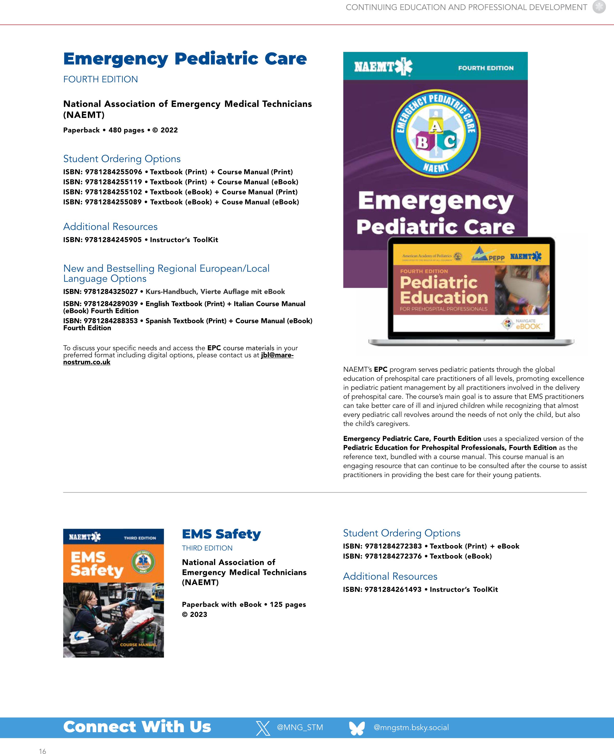 The Public Safety Group, a Jones & Bartlett Learning brand, has become the world’s most innovative and trusted source for educational materials and solutions for EMS and fire students, educators, and professionals by combining the collective value of its people, products, and partners. From initial training to retirement, it strives to be a lifelong learning partner to those who serve our communities tirelessly and ensure our safety and well-being. Please review this catalogue for a glimpse at some of their key products and learning solutions.