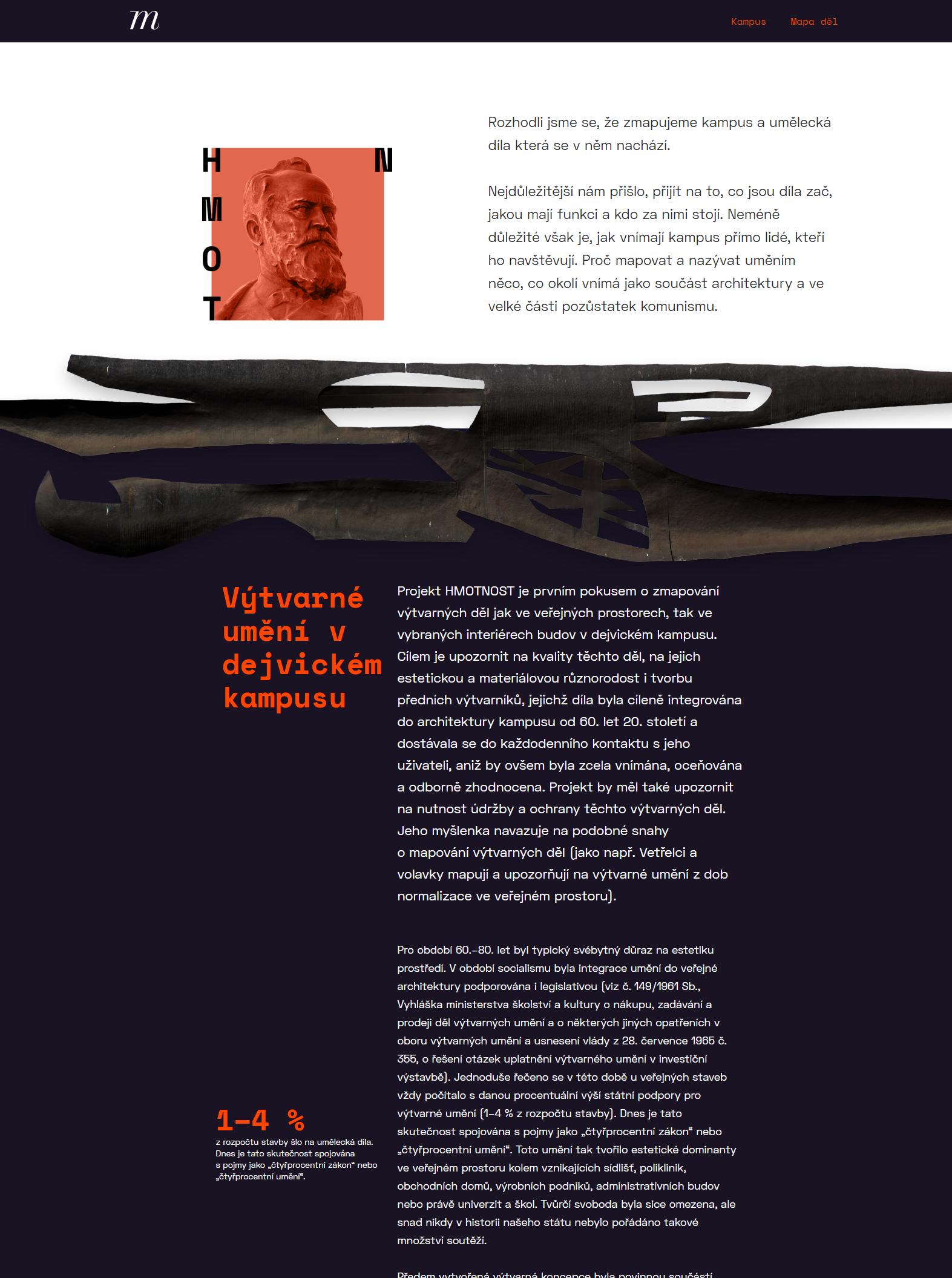 WEB PROJEKT HMOTNOST - MAPOVÁNÍ A OSVĚTA O UM. DÍLECH A INTERVENCÍCH V DEJVICKÉM KAMPUSU