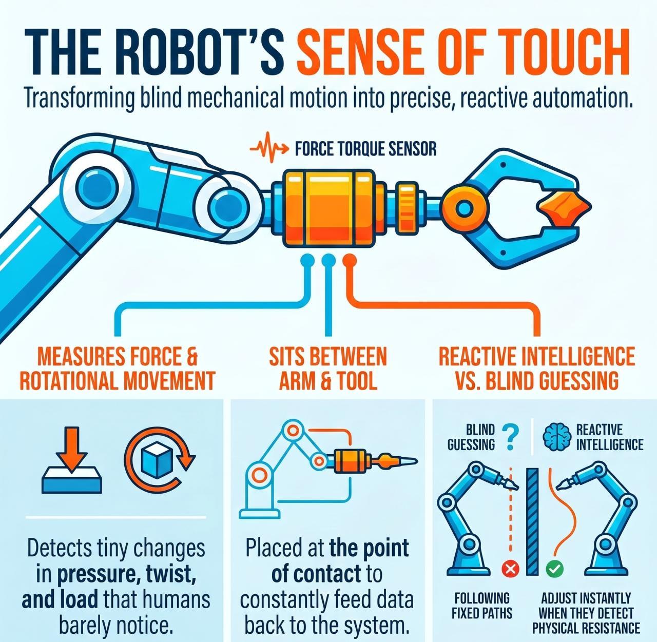 So instead of a robot just following instructions blindly, it adjusts in real time. If something pushes back, it knows. If resistance changes, it reacts. Without this, robots are basically guessing. And guessing is not what you want in manufacturing or automation.