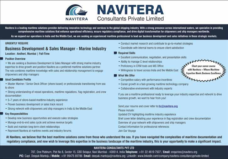 To make appropriate enquiries before sending money, incurring expenses or entering into any commitment in relation to any advertisement published in this publication. Maritime Matrix Today does not vouch for any claims made by the Advertisers of Products and Services. The Printer, Publisher, Editor and Owner of Maritime Matrix Today shall not be held liable for any consequences, in the event such claims are not honoured by the Advertisers.