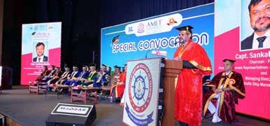 The Special Convocation marked the Conferment of the Degree of Doctor of Science (Honoris Causa) upon two eminent leaders of the maritime industry, in recognition of their exceptional professional contributions, leadership, and service to the maritime sector. The Citations of the ‘Honoris Causa’ awardees were formally read by Col. Dr. G. Thiruvasagam, Provost, AMET University, following which Dr. J. Ramachandran, Founder Chancellor, AMET University, presented the citations and conferred the Degrees of Doctor of Science (Honoris Causa) in a solemn and dignified academic ceremony to: