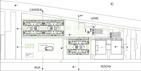 Os outros dois edifícios sao voltados para habitação, e os dois possuem uma fachada ativa no térreo. Nas áreas de lazer foram colocadas uma área para pratica de atividades físicas, uma piscina para uso tanto privado como púbico - aos fins de semana - , uma horta comunitária e um parquinho para as crianças.