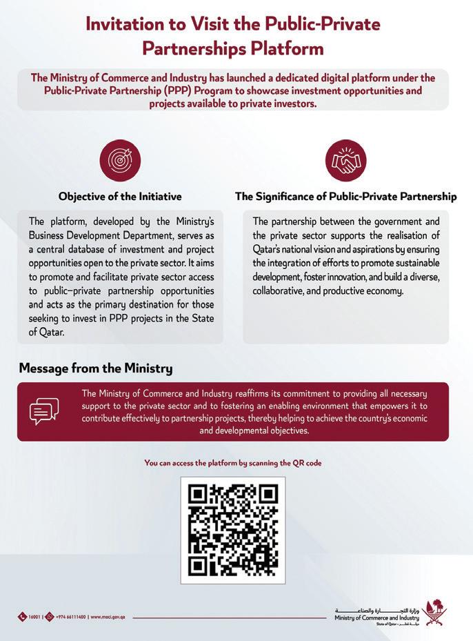 Developed by the Business Development Department at the MoCI, the platform is a central digital database providing investment opportunities across various sectors. It will facilitate private sector access to PPP projects, allowing investors an easy way to explore business opportunities in Qatar. According to the ministry, the initiative will support the private sector in identifying and participating in investment projects that contribute to the nation’s economic growth.