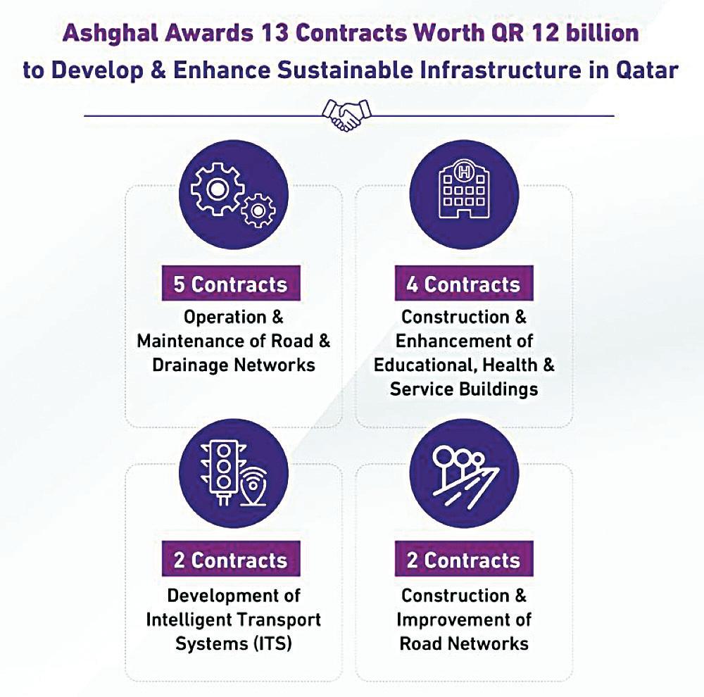 Ashghal awarded 13 new contracts in September 2025 worth QAR12 bn. Projects include road and drainage network development and maintenance, improving safety systems in 40 schools, refurbishing the Psychiatric Hospital, and constructing three new schools. Work is expected to begin in Q1 2026.