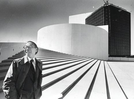 I M Pei outside John F Kennedy Presidential Library and Museum, Massachusetts 1979 © Ted Dully/The Boston Globe via Getty Images