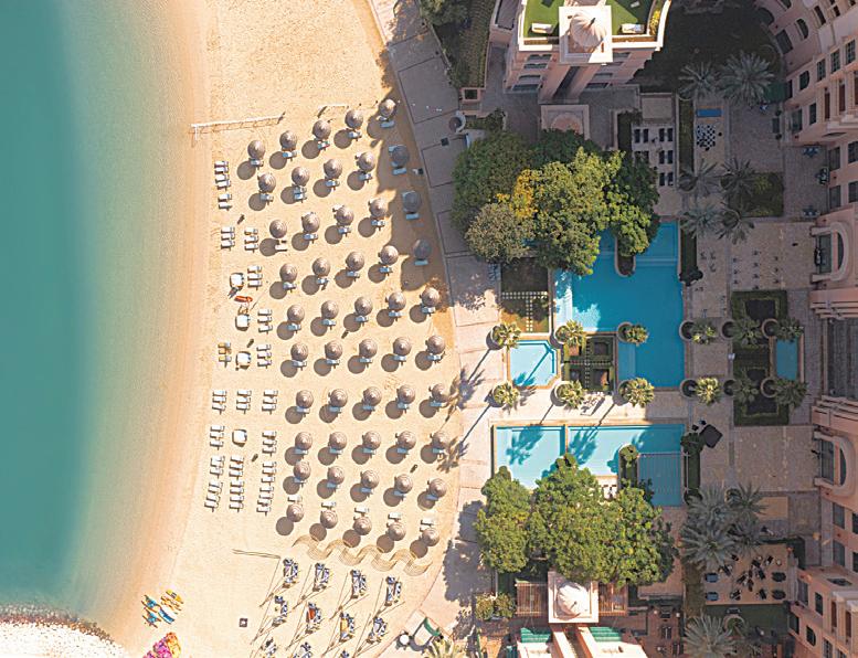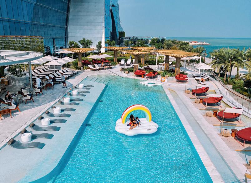 Beach Centrale A family-friendly destination with three climate-controlled pools – a main pool for adults with an artificial sandy beach, a second swimming pool and a water park for children. There are also changing rooms, lockers, and food and beverage kiosks. Opening hours: Daily 6 am –6 pm. Admission: Residents QAR50, visitors QAR100, children under the age of 2 enter for free. 800 6222, thepearlqatar.com ✔