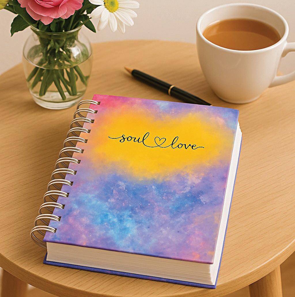 Soul Love is a nearly 300-page journalling book designed to help you pause, reflect, and focus on your personal goals and dreams. It includes dedicated sections such as ‘Vision Board’, ‘My Personal Goals’, ‘Reflection’, ‘Design Your Days’, ‘Abundance’, ‘Angel Messages’, ‘Monthly Reflection’, ‘Automatic Writing’, ‘Affirmations’, ‘Let Go Of’, ‘My Milestones and Achievements’, ‘Notes and Ideas’, and more.