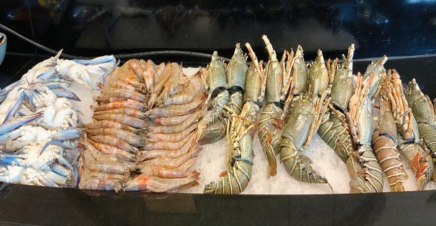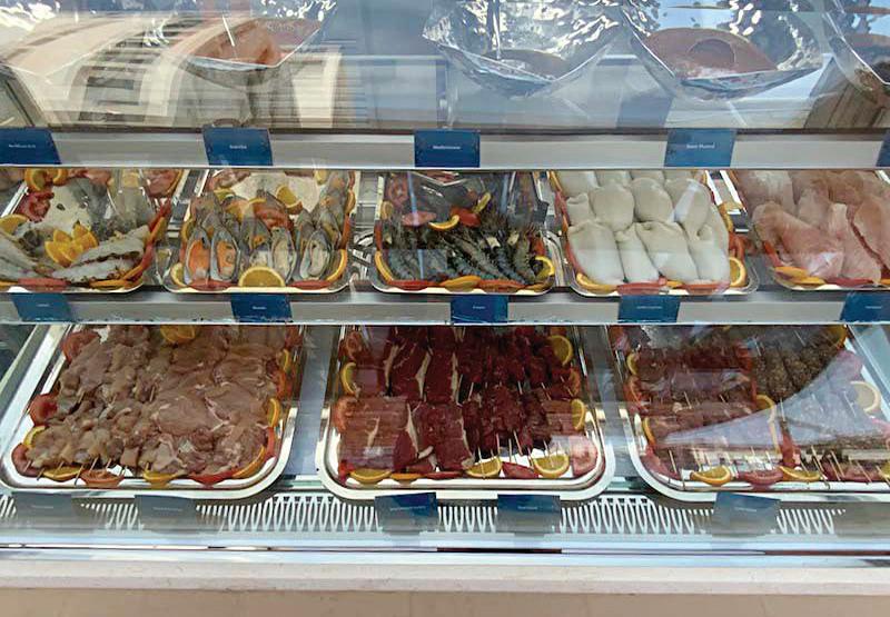 Dishes that we chose and enjoyed: the cold starter with beef bresaola… but wait, add roast figs, truffled honey and blue cheese and it’s transformed. Wonderful, especially with chicken liver and pistachio terrine and a slice of their freshly baked bread. Try, like us, a plate of seafood starters, mussels, shrimps and squid, and most delicious the tail of lobster. Arabic cold mezze is very common in Doha, but come to Crowne Plaza and the common becomes sublime.