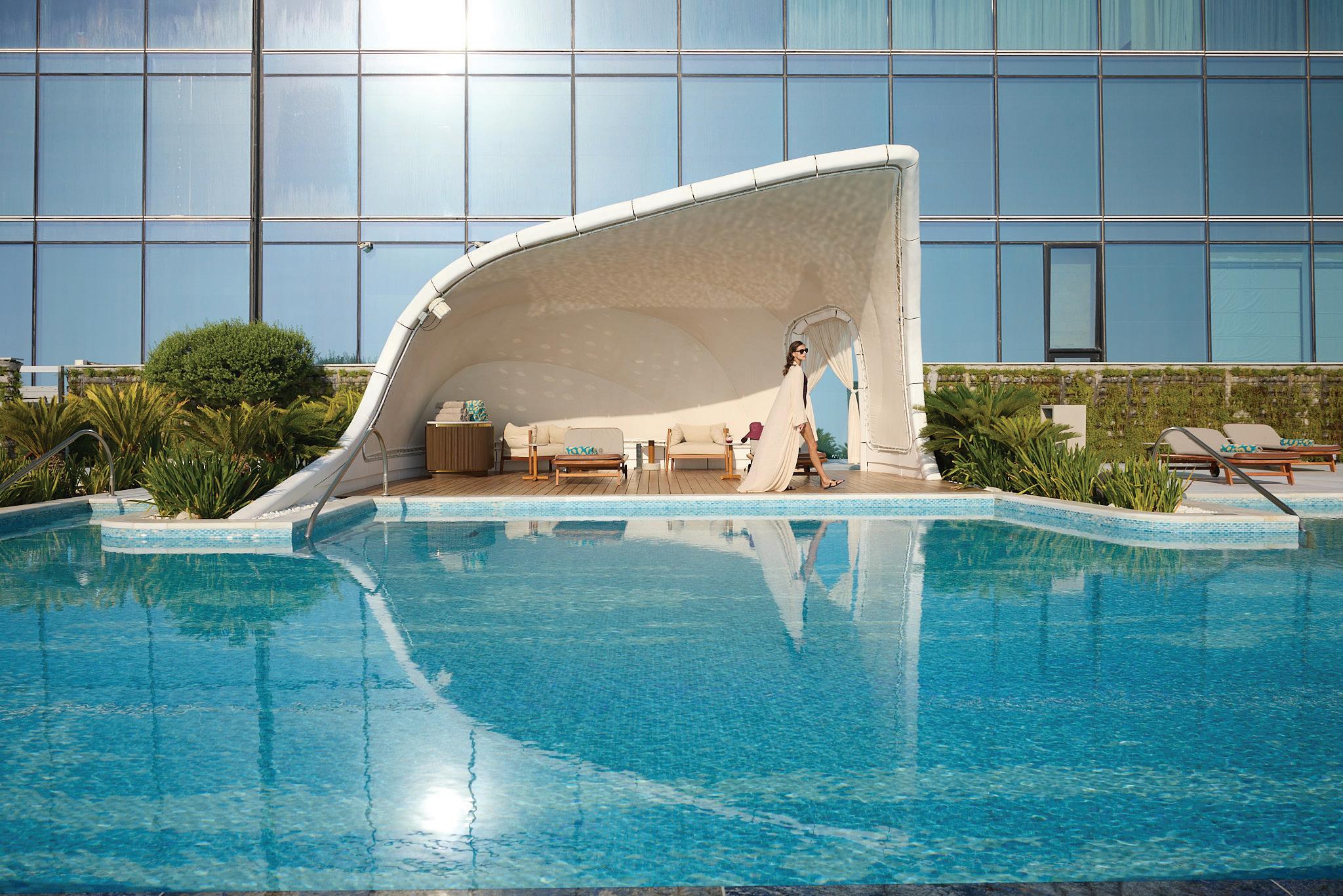 stations. Markhan, an Arabic fusion lounge, offers the ideal place to enjoy the sunset from the terrace overlooking the gulf. Emshoot invites guests to discover the culinary delights of Asia’s diverse flavours with dishes ranging from sushi to tandoori kebabs. Serving a selection of light international dishes, guests can dine upstairs and embrace the sights and sounds of the nearby souq at Mahaadeg’s terrace. Guests can grab a quick bite for breakfast or an afternoon snack at the Lobby Lounge. In addition, majlis are situated across the property offering an authentic Bedouin-style evening of live barbecue and other social gatherings.