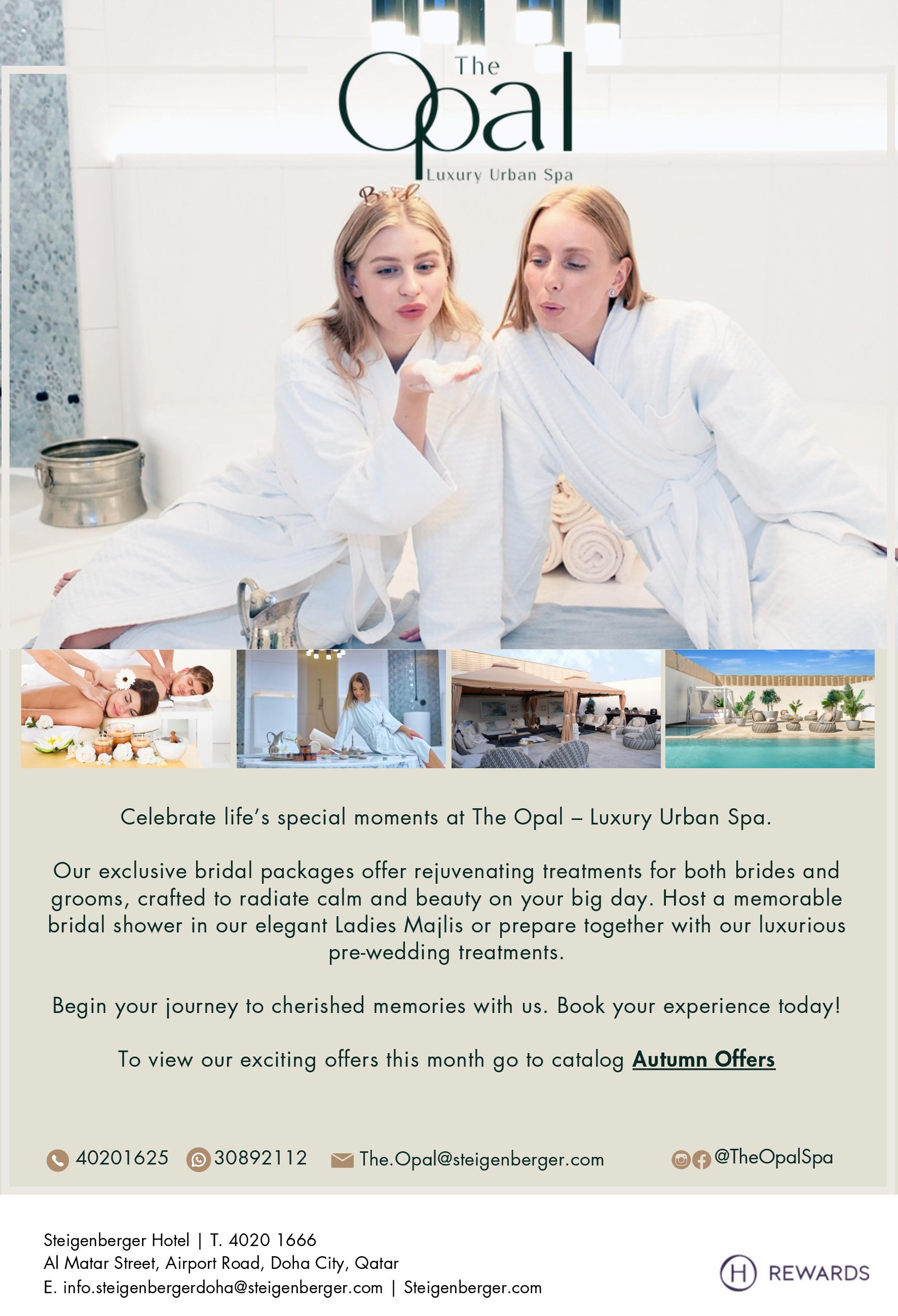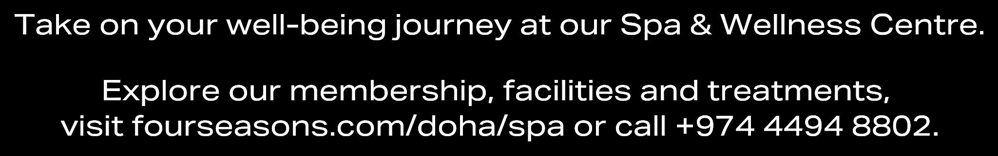 Daily, upon booking. Raffles Spa & Wellness For reservations, please call +974 5992 3447 or email spa.rafflesdoha@accor.com