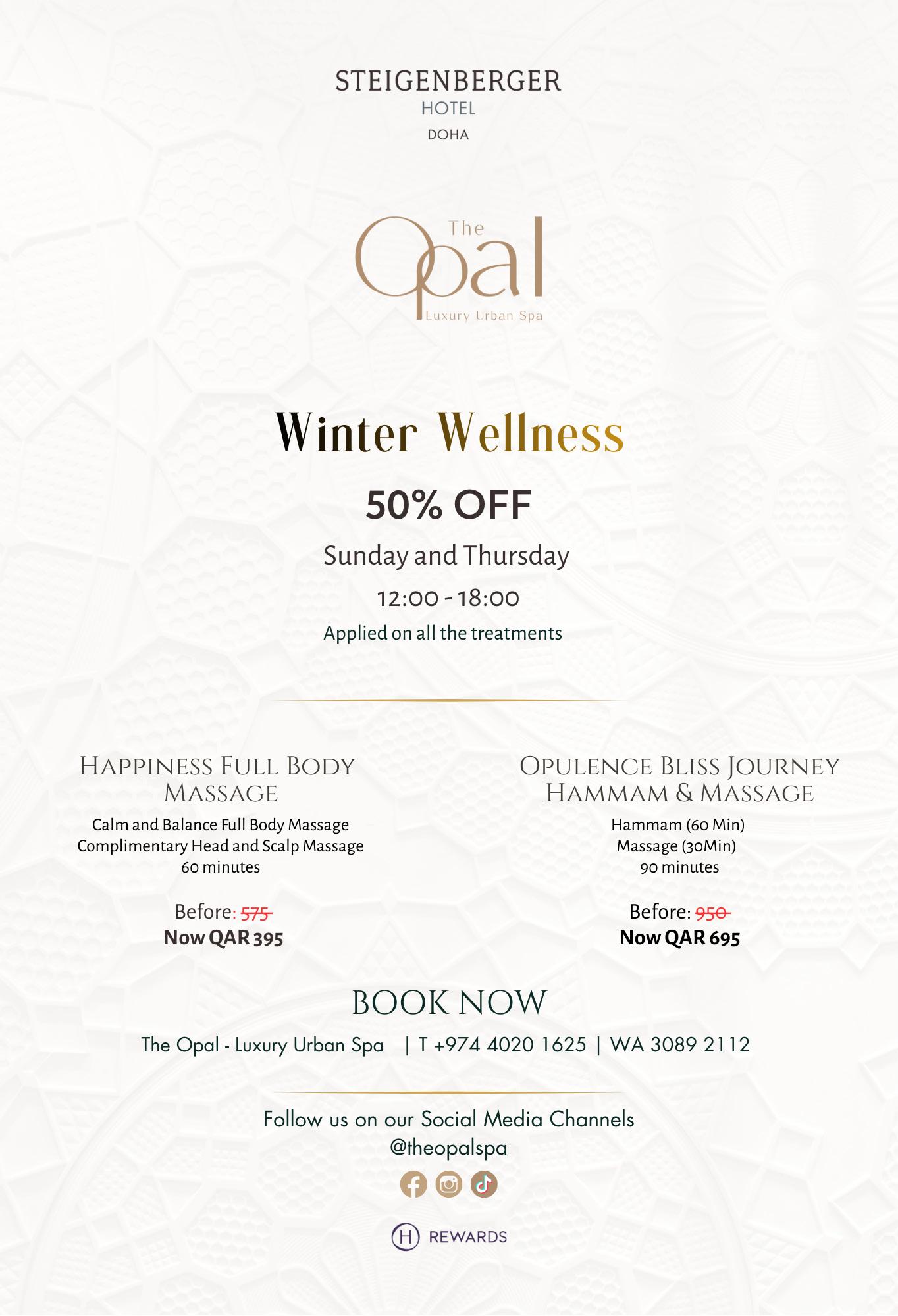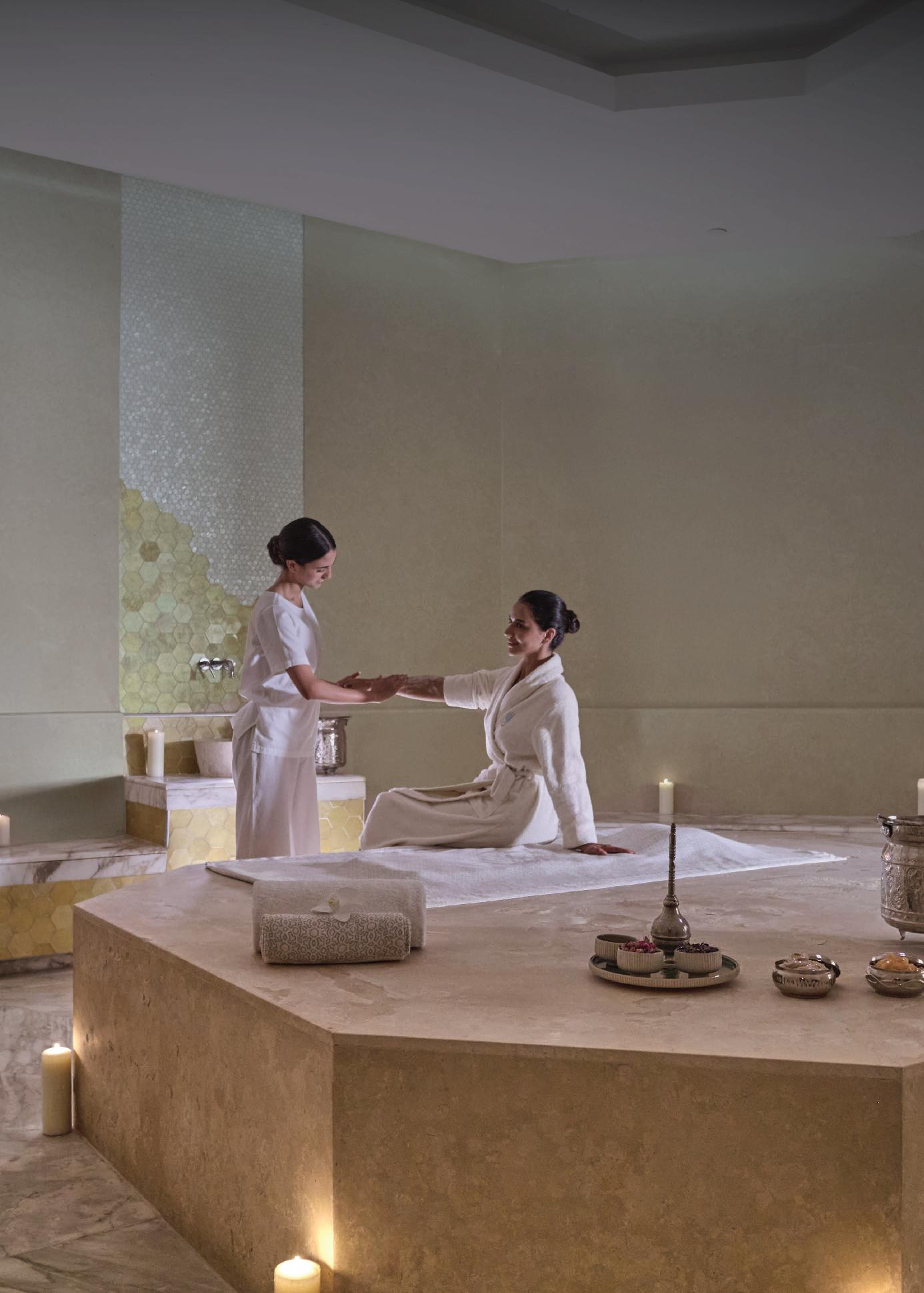 Surrounded by the beauty of Katara Cultural Village, the Katara Hills Spa o ers an intimate retreat dedicated to wellness and balance. Tailored treatments, expert therapists, and natural products ensure a deeply restorative experience, where stillness and sophistication meet in harmony.