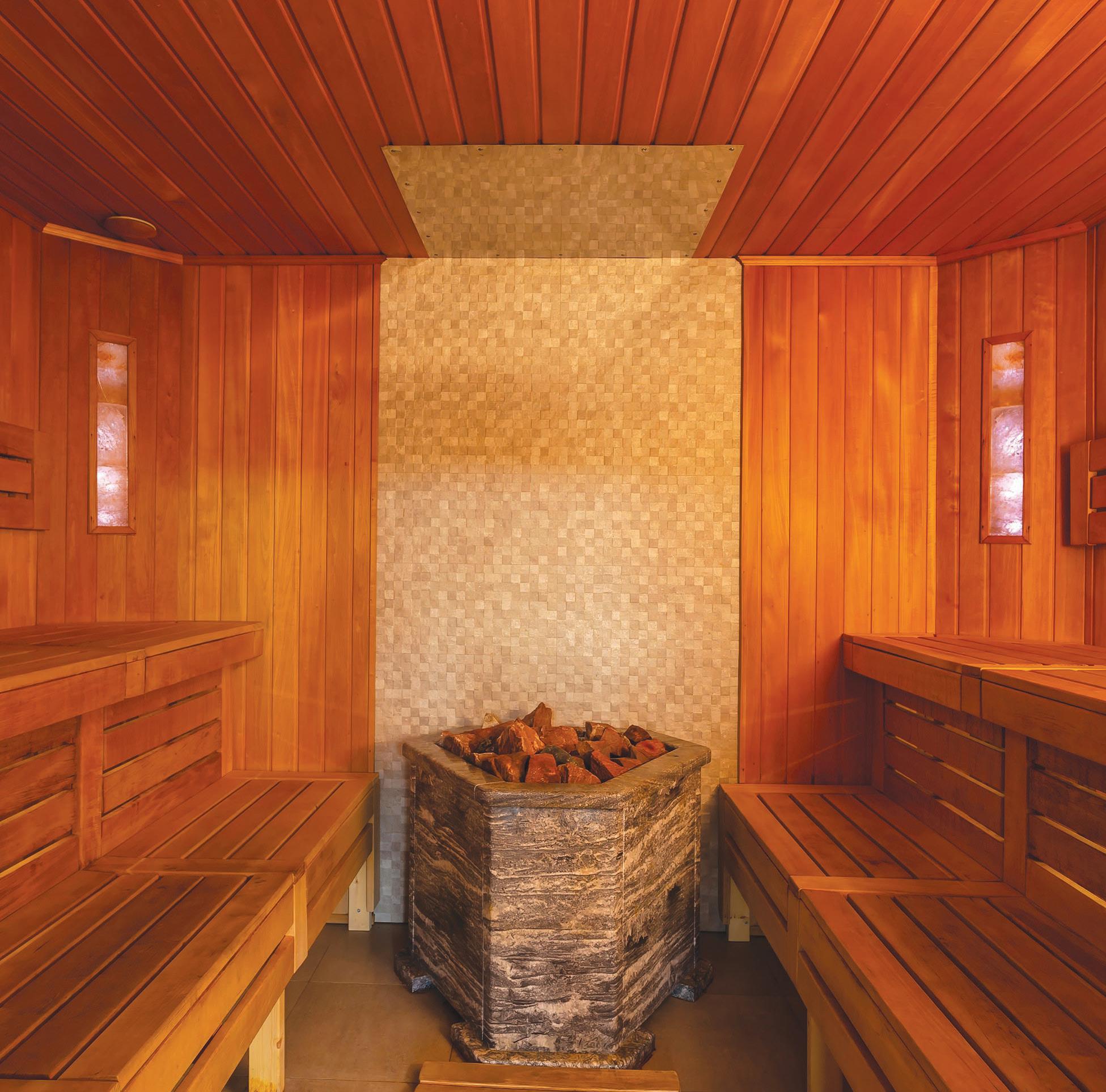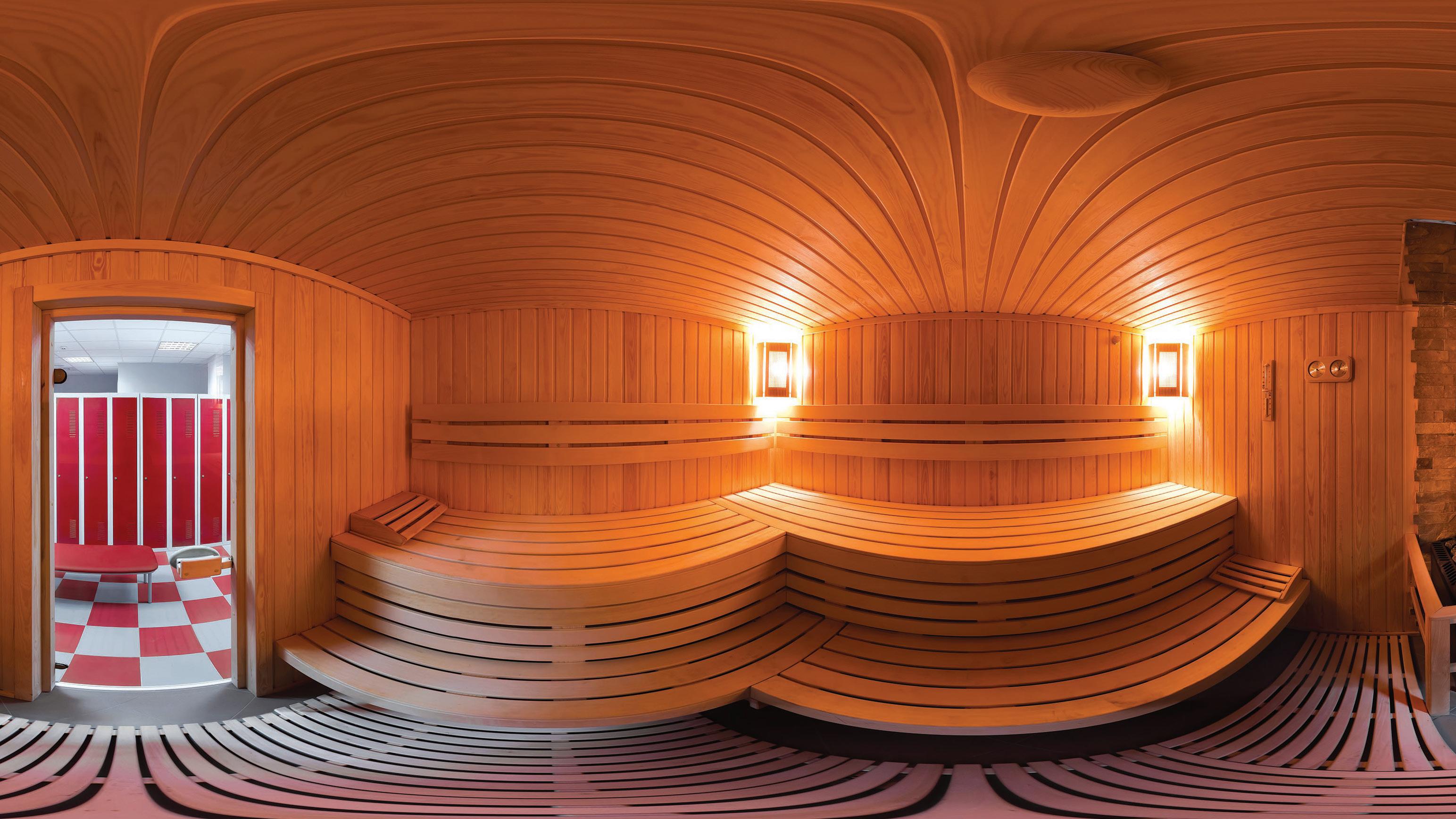 Saunas are small rooms, often made with wood, and heated 65°C–90°C. Some saunas have rocks inside that absorb the heat of the room; water can be added to these to create steam. Using saunas is easy but there are a few things to note. When entering, try to be quick as they are airtight and opening the door will allow the heat to escape. Bring a towel to sit on once you are inside the sauna, and when selecting your seat remember that heat rises, so the elevated seating areas will be hotter – experiment with this to find what temperature is right for you. It is recommended that you spend no longer than 10 minutes in the sauna. Be mindful that this is a shared space and that it is polite to check with others before changing the temperature.